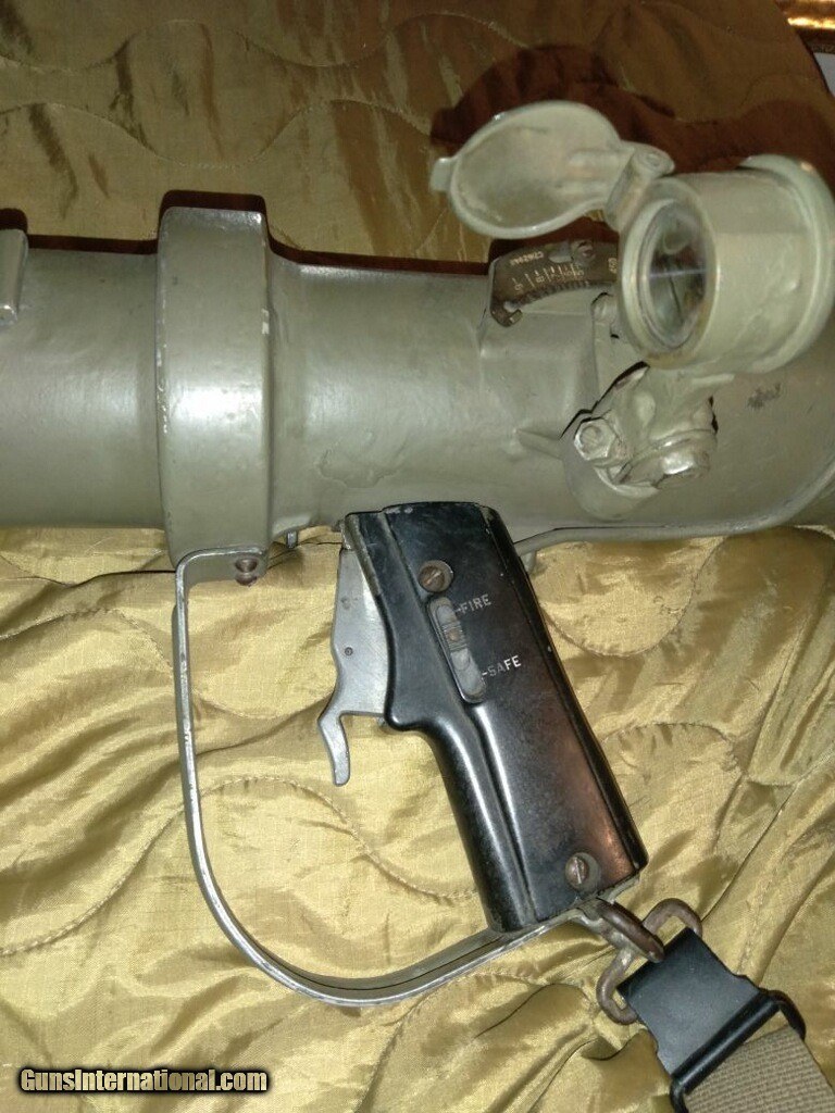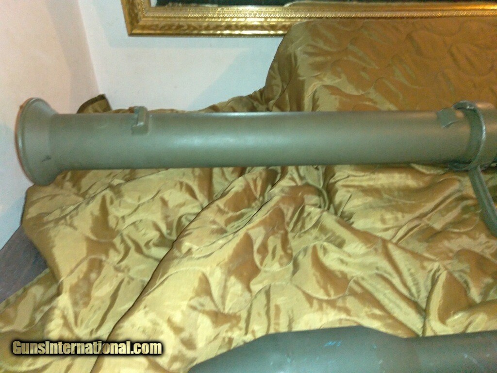 Description: Complete parts kit for US military M20A1B1 Super Bazooka rocket launcher that has been deactivated per ATF specs with a bore-size hole cut in the tube and rod welded in the bore. Legal to own with no paperwork required but still capable of being restored to firing condition if ever desired. Trigger still works, sights are immaculate. Beautiful original olive-drab paint. Comes complete with original parts, spent round, and sling. Also comes with an original US Army instruction & maintenance manual in mint condition as well as a fired practice round that is in excellent condition! An amazing museum quality piece of military history! Don't miss out on this opportunity. Buyer responsible for shipping. SOLD |