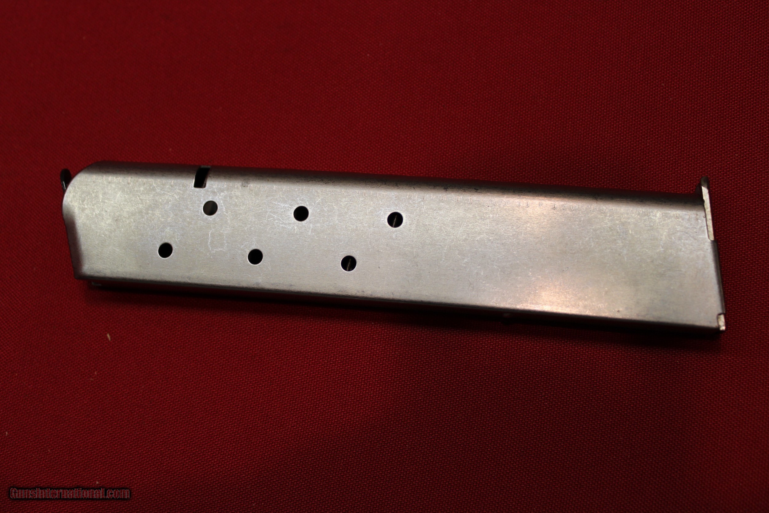 Description: Colt model 1911 Pistol caliber 45 A.C.P. 11 round Stainless Steel Magazine made by U.S.A. Magazines Inc. New Old Stock in the original package. Not offered where prohibited. Please know your local laws. Credit cards accepted. Price reflects a .3% reduction for check or money order payment. GOD BLESS AMERICA SOLD |