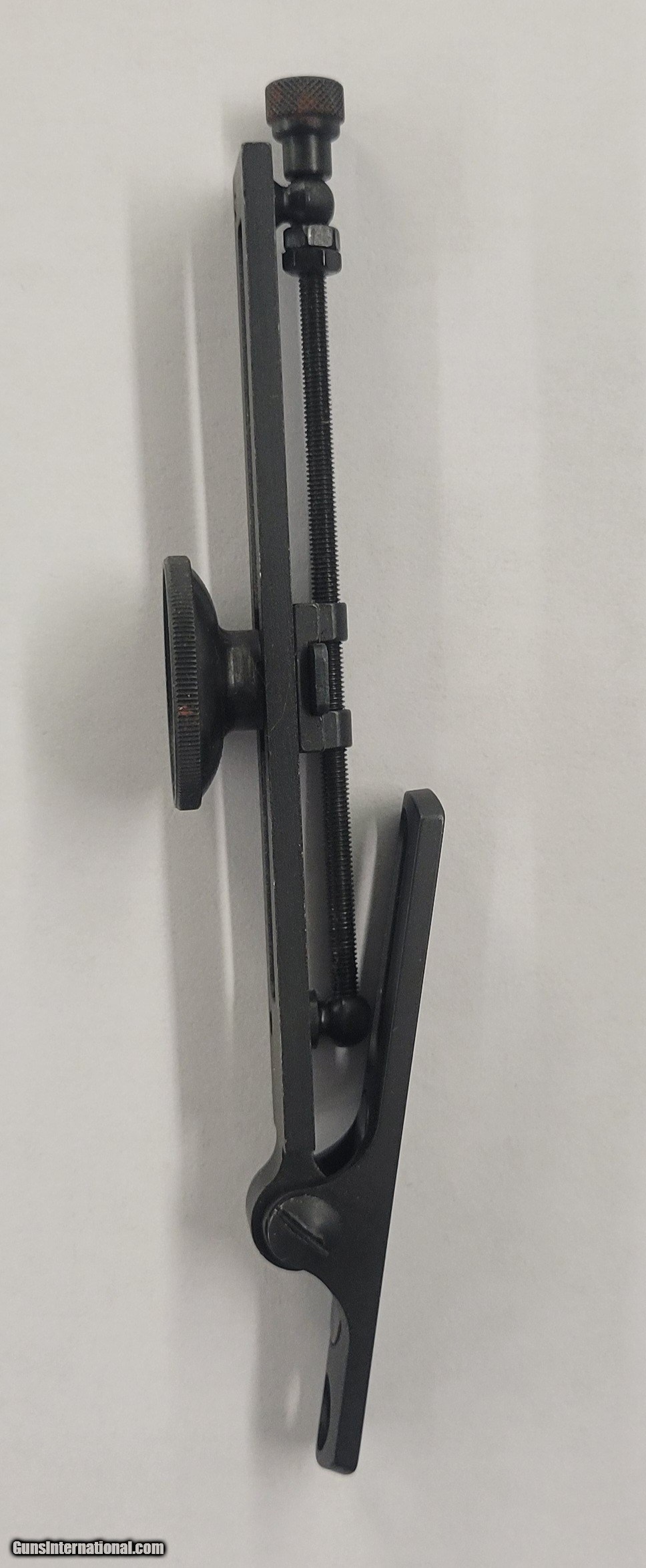 Description: Available - made by Pedersoli, this vernier tang sight will fit most models of their Sharps rifles as well as many other firearms. The mounting base has a long slot so it can be used on tangs with a 1 1/2" center to center and up to 2 1/4" center to center. It may be hard to see in the pictures but the vernier scale is on the side of the tower. Max elevation is 3 3/4" and min is 1 19/32". Blued steel. E-mail with any questions or for more pictures. Buyer pays $10.00 for shipping & insurance to anywhere in the USA. Full payment is expected within 7 days of purchase commitment. VISA, MC, AMEX & Discover accepted - add 5% to the purchase price. Please contact us BEFORE purchase with any questions, call 814-725-1486. Thanks for looking! Kory and Crew Valley Gun Works 814-725-1486 SOLD |