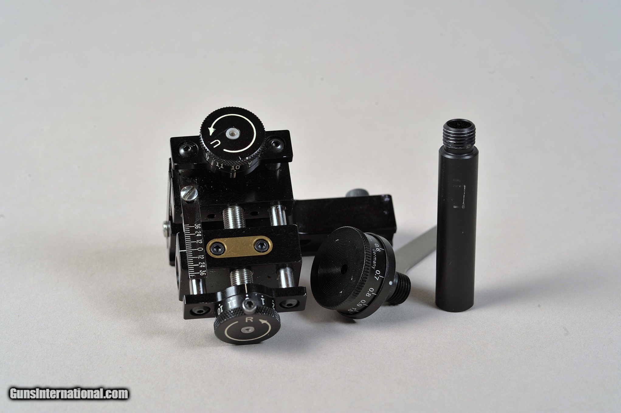 Description: SOLD Warner Tool #2 Long Range Rear Sight This is a complete rear sight package. The sight was manufactured by The Warner Tool Co. (American made in NH), for a right-handed shooter, has standard American rotation of counter clockwise for elevation up and counter clockwise for windage right. One complete rotation of either knob is 3 MOA (1/4 MOA per click). The elevation maximum is 69 MOA and the windage maximum is 39 MOA (long range version) right or left. Many shooters believe this is the best sight made today—very high quality, hand made an beautifully machined—difficult to find used or new. Included is a Gehmann 510 Rear Sight Iris with a range of 0.5 - 3.0mm and a Gehmann rear sight anti-glare tube (#556-50 mm) Buyer pays for shipping and any added insurance. Payment by USPS money order or certified bank check. SOLD |