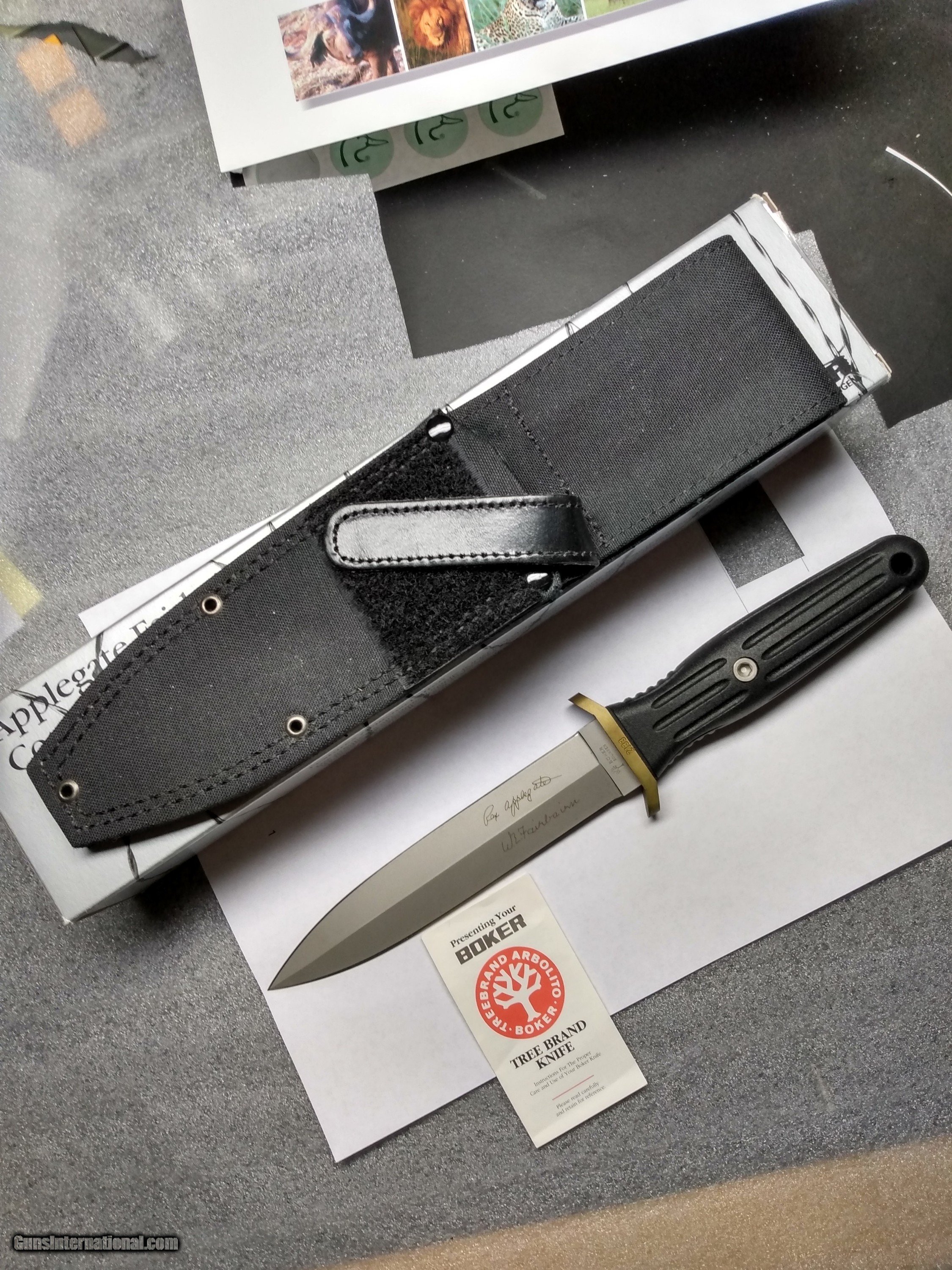 Description: (SOLD) Applegate Fairbairn Combat Knife. Condition...New...Never Sharpened or Carried. Double edged Dagger Configuration. Factory Original Sheath. Original box. FREE Shipping to lower 48. SOLD |