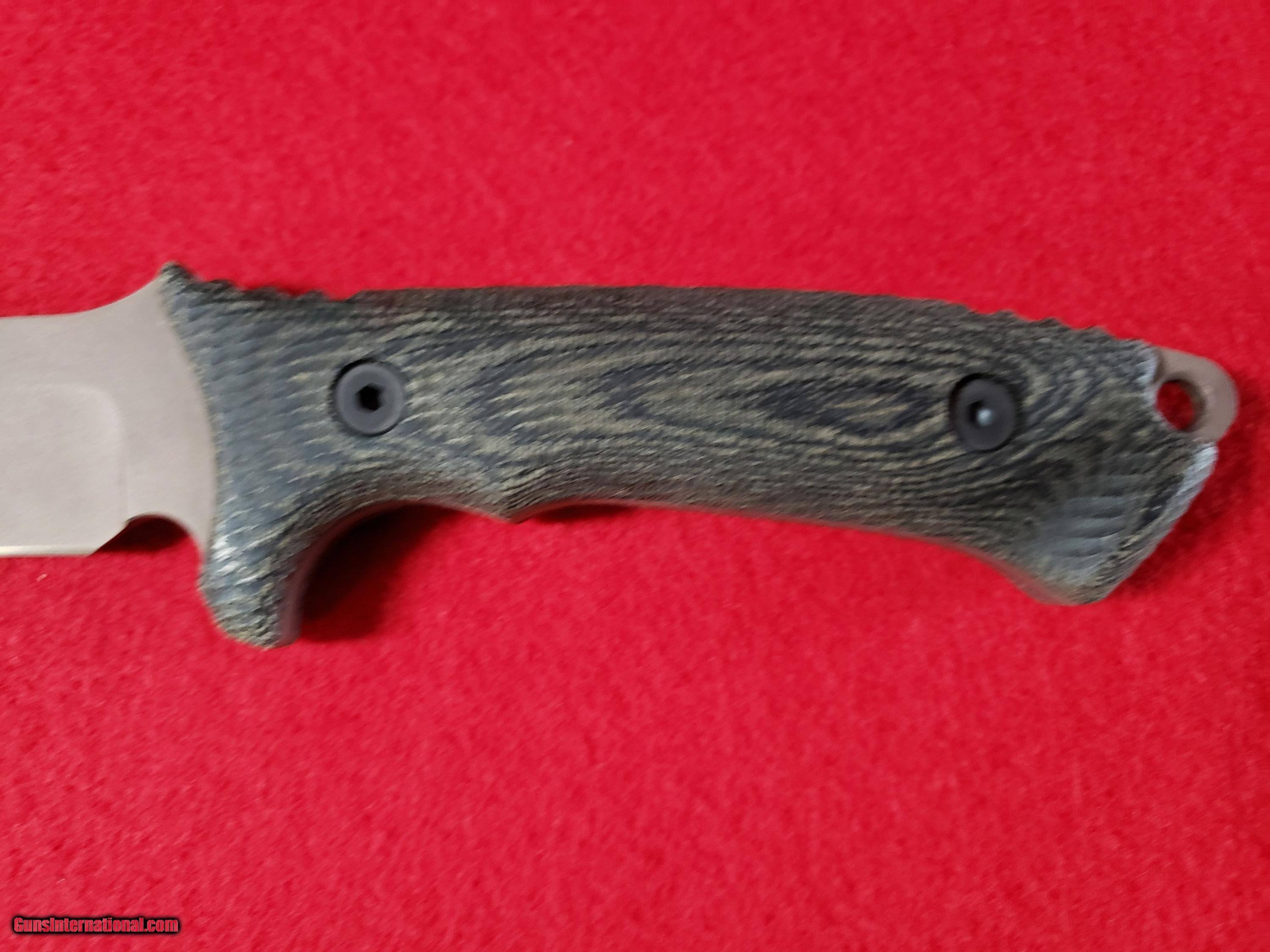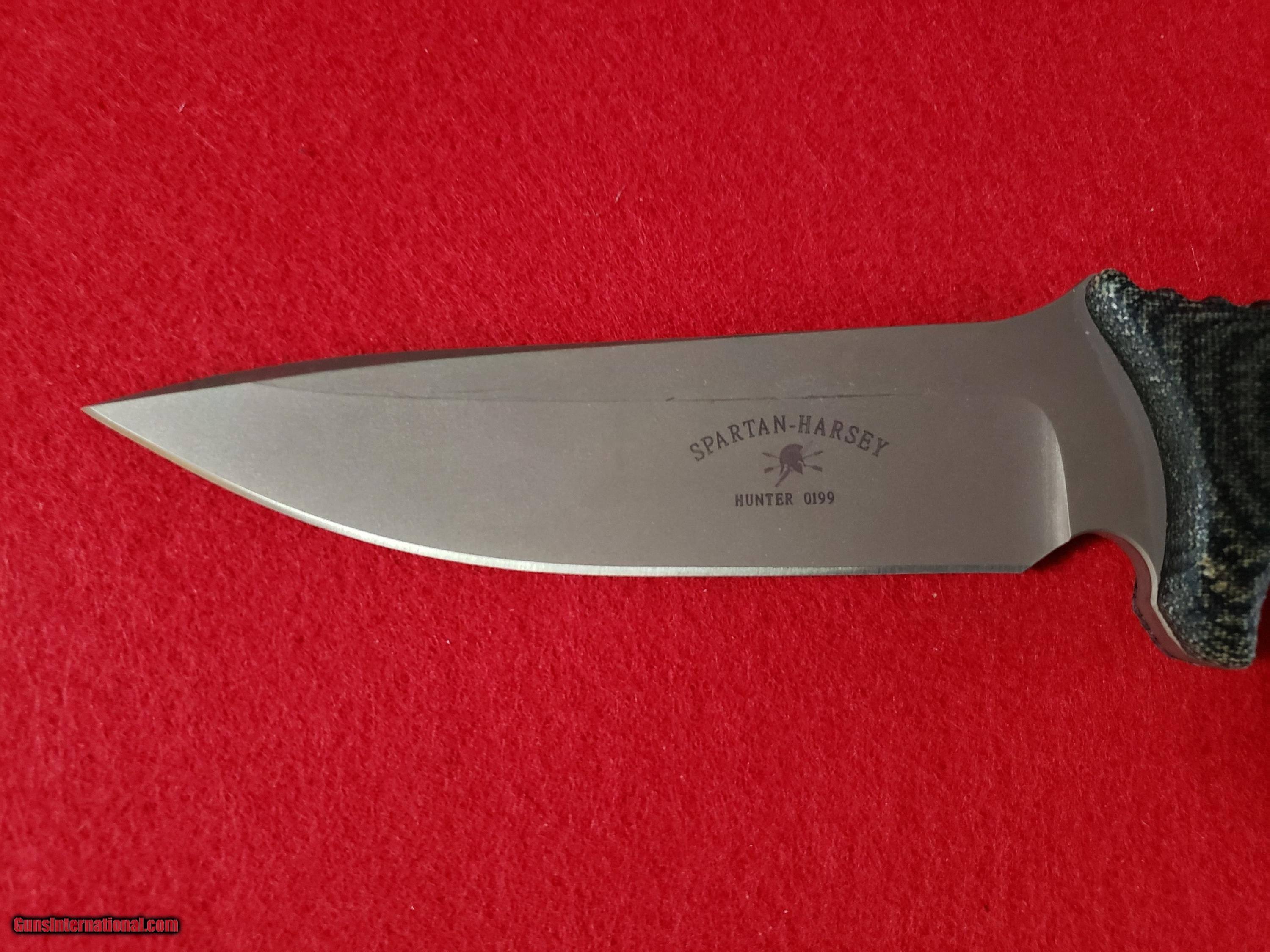 Description: Spartan Blades Limited Edition #0199 Spartan Harsey Hunter Fixed Blade Knife with Kydex Sheath. This is a discontinued knife and limited edition Harsey/Spartan original. Factory sharp and doesn't appear used and looks great. You won't find one like this around so if you need this for your collection make sure you purchase this while you can. Does not have a box it's just knife and sheath. Free shipping for this knife. The Spartan Blades Spartan Harsey Hunter - This is Spartan Blades second collaboration with world renowned knife maker, William "Bill" Harsey. Our combined goal was to make a knife that would serve double duty by providing service as a combat knife and as a hunting knife. The blade profile, top bevels and main blade hollow grind of this full tang knife work well on either the battlefield or cleaning a trophy buck. Our intent was to make a knife that a service member could carry in combat and use after returning from war when camping and hunting. Bevels are hand ground by Bill Harsey. Handle scales are 3D machined to ultra tight tolerance from 3/8" canvas Micarta to provide a comfortable and sure grip. This knife will serve you well no matter what you are hunting.. SPECIFICATIONS: Knife Name: Spartan Harsey Hunter Designer: William Harsey Overall Length: 10 1/2" Blade Length: 5 3/16" Blade Thickness: 3/16" Blade Steel: CPM S35VN Blade Hardness: 59-60 HRC Blade Style: Drop Pointdesigned as a sturdy combat & hunting knife. Coating: SpartaCoat - PVD in ZrN (Flat Dark Earth) Handle Material: 3D Contoured CE Canvas Micarta® Black Weight: 0.64 LBS SOLD |