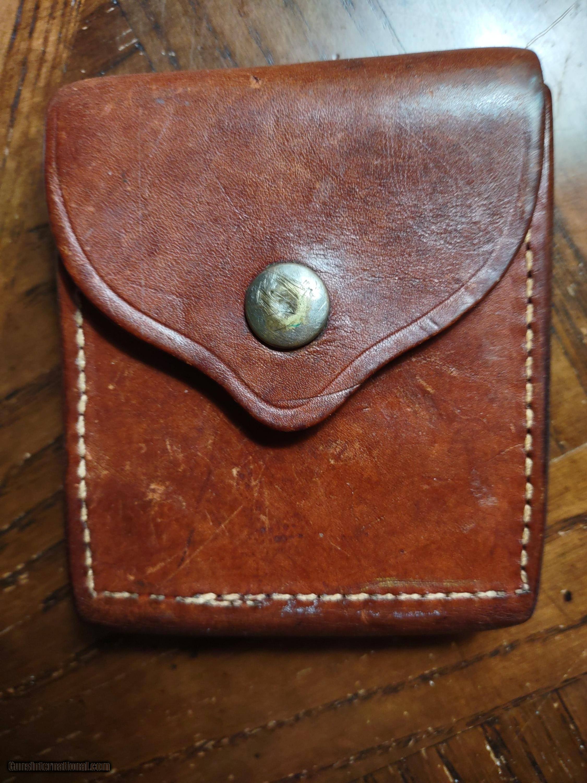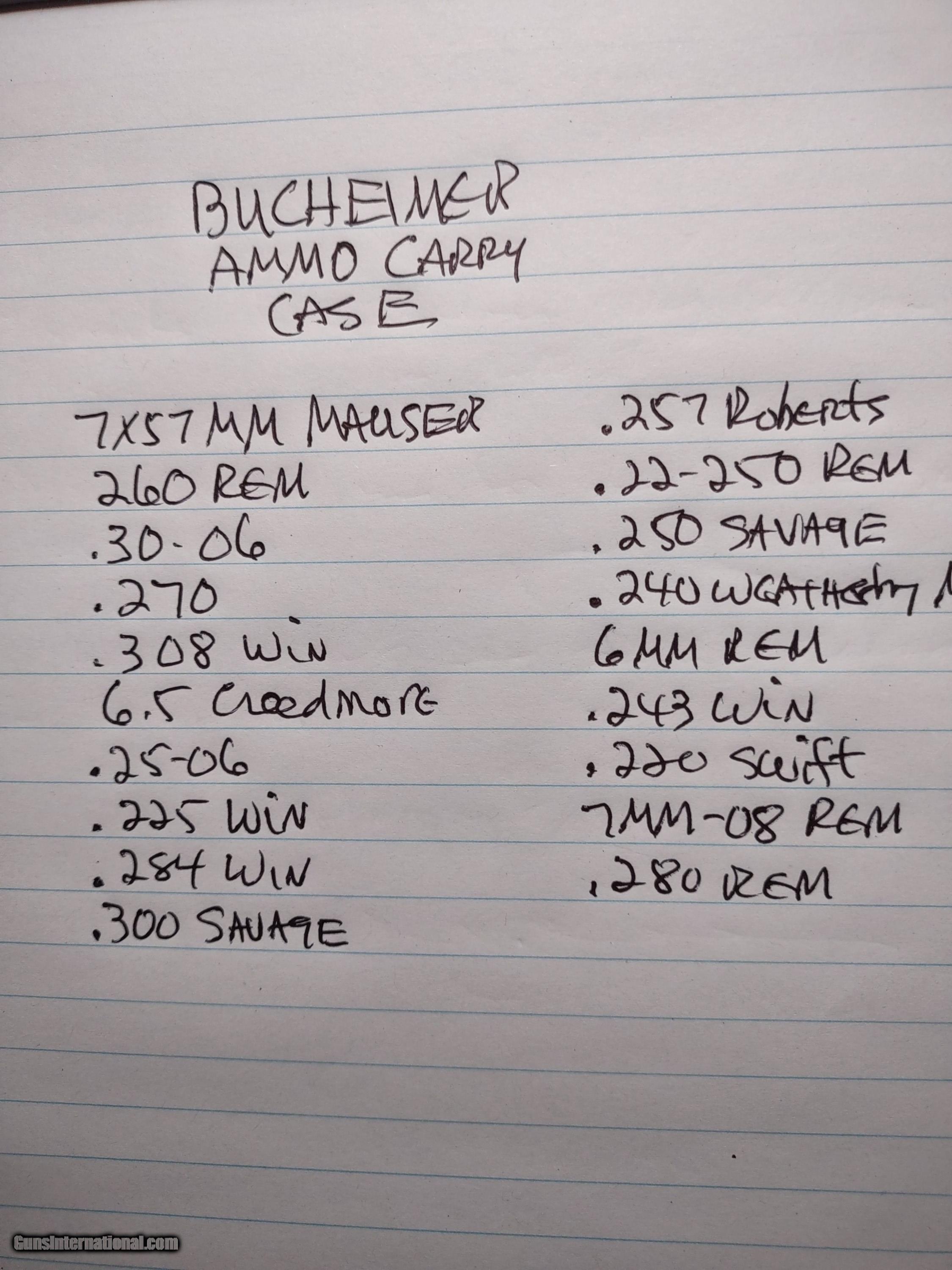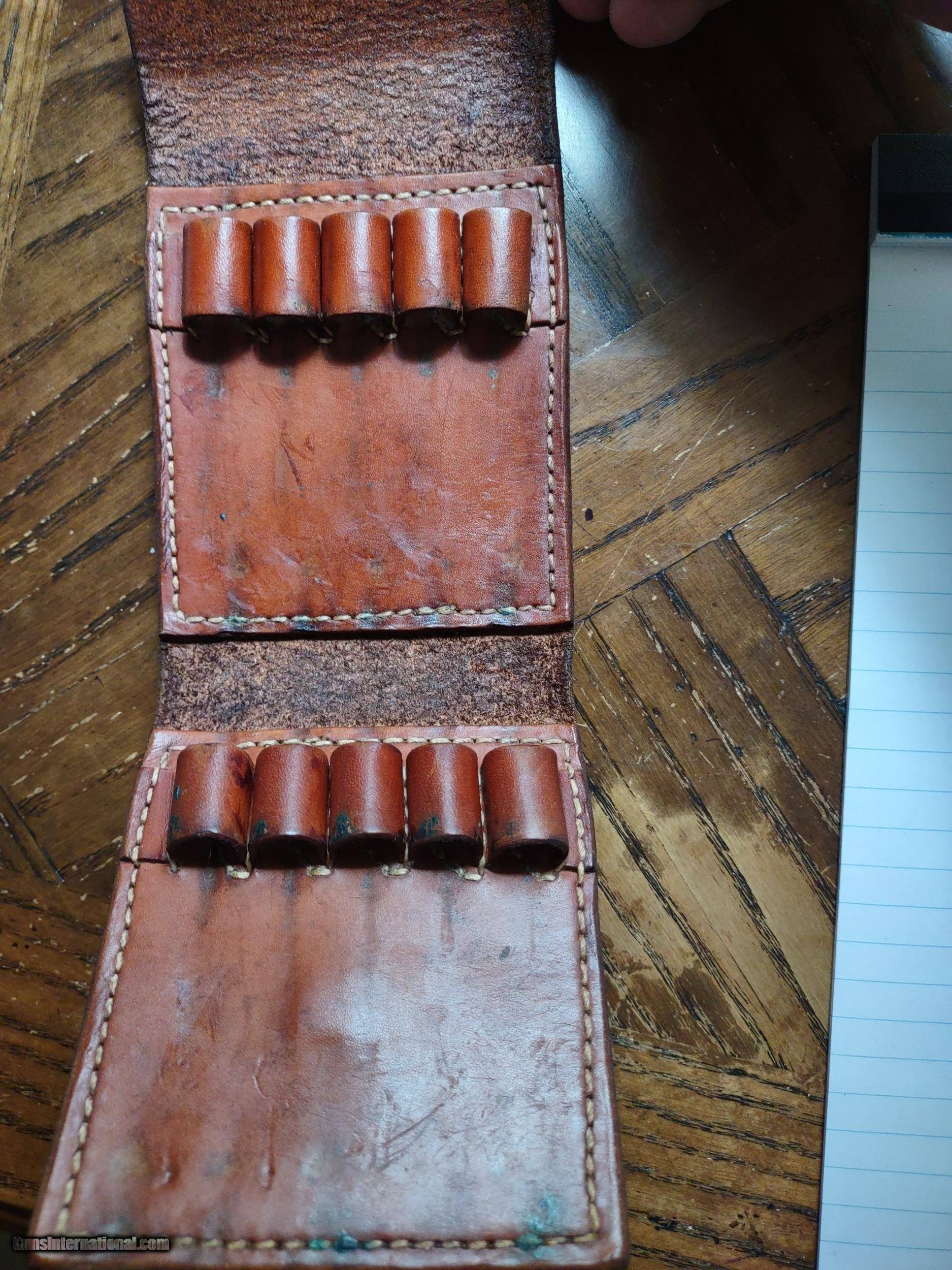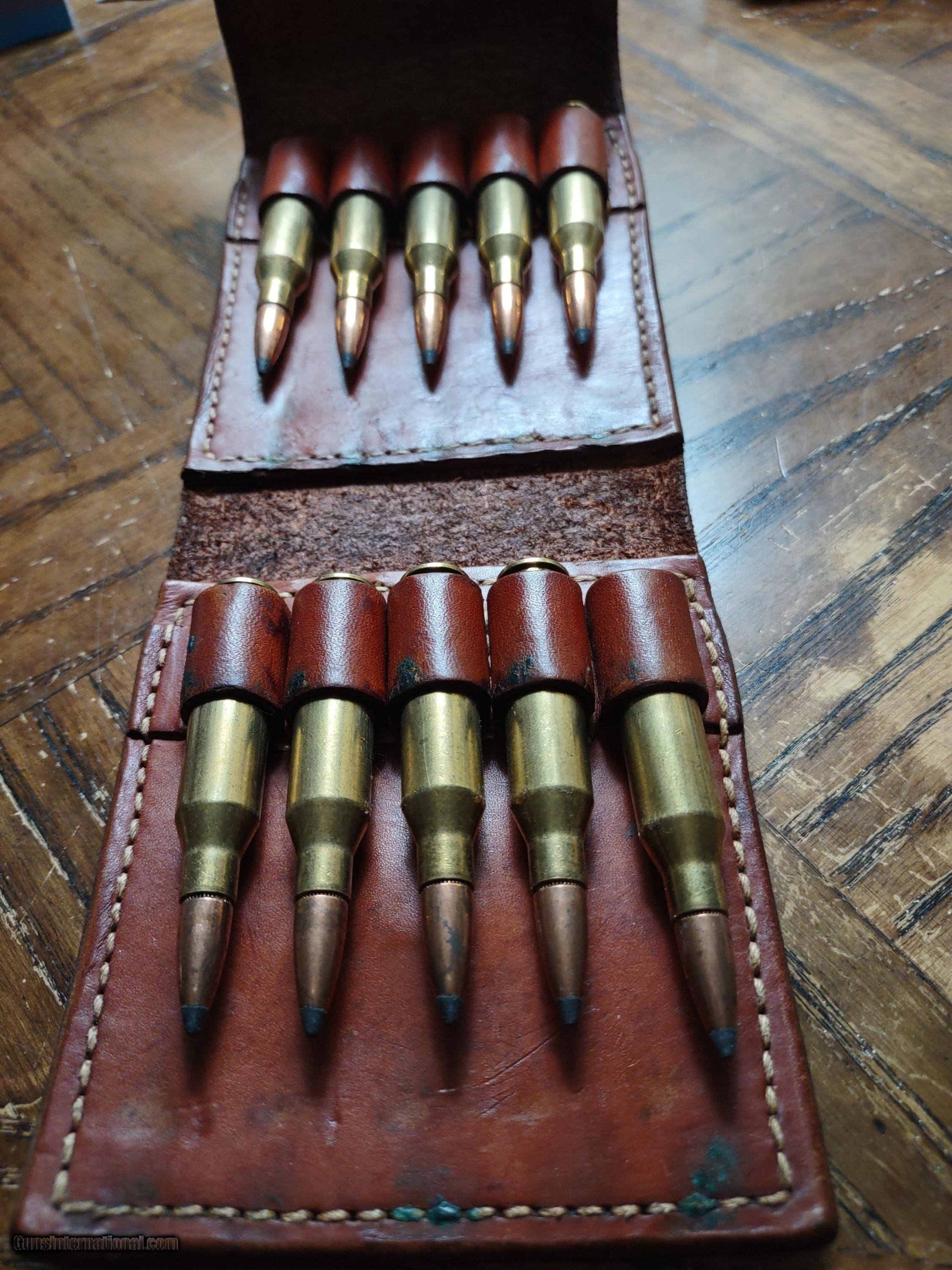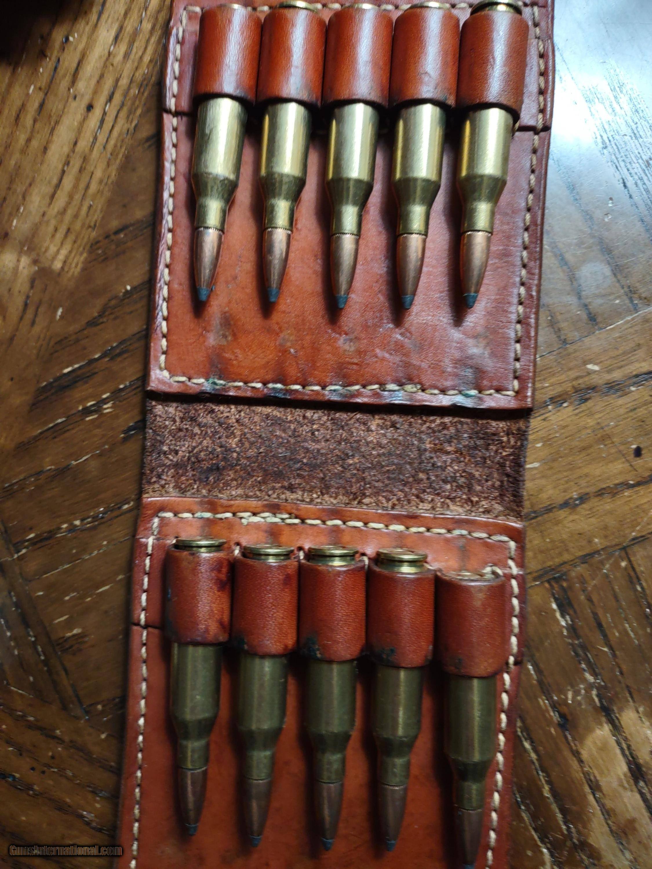 Description: BUCHEIMER 10-round rifle ammo case for your belt, all original quality leather in excellent condition. Fits all 19 caliber rounds in .308 base circumference...see photos for the complete list and overall condition of the case. The price is $45 including shipping to your home or workplace. Call or text me at 318-780-4242 if you are interested. SOLD |