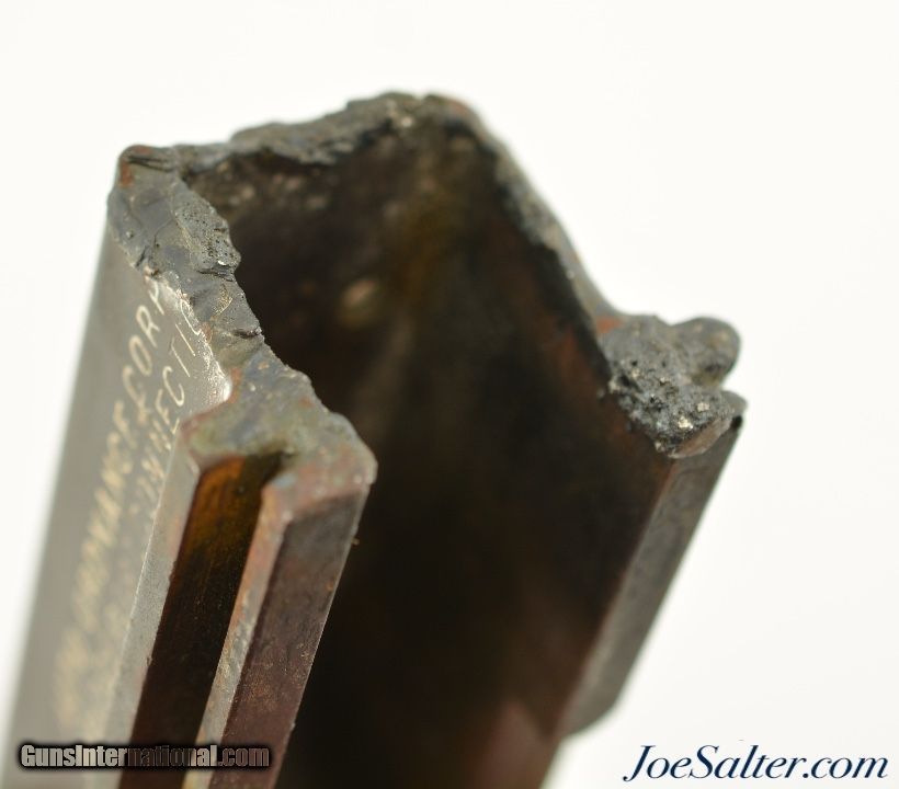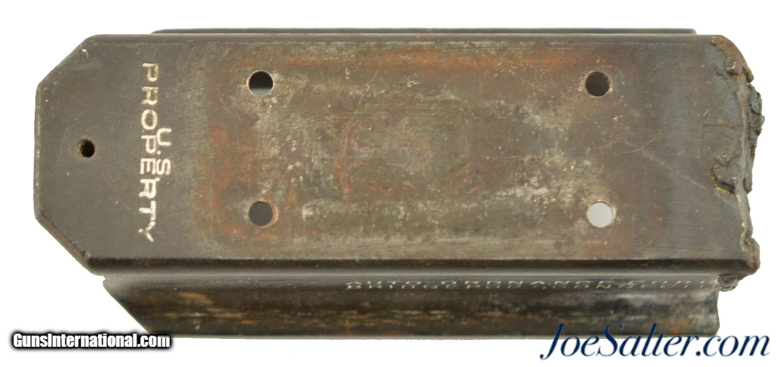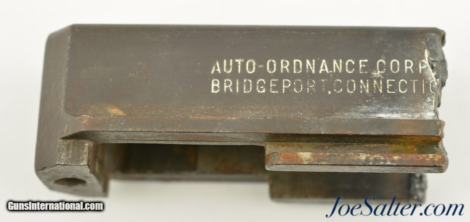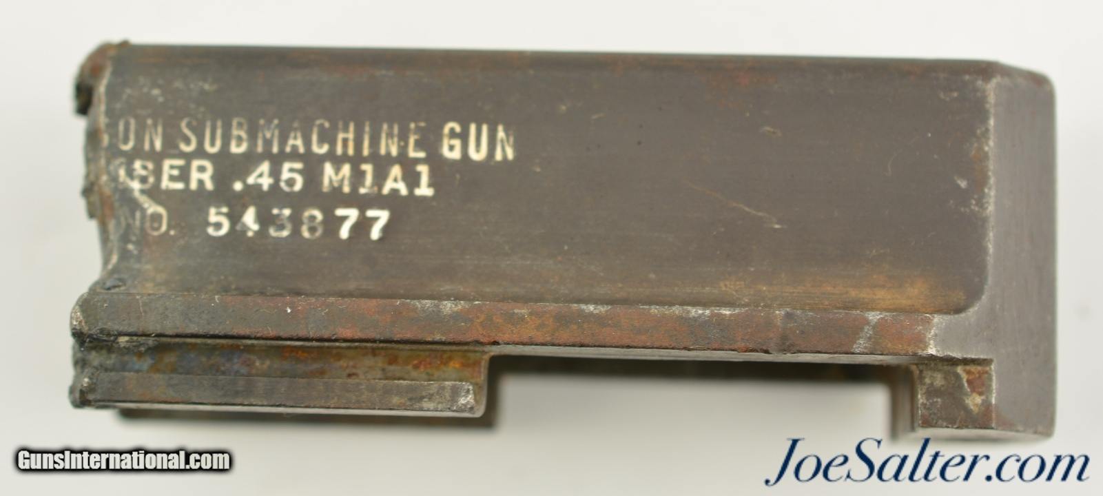 Description: This is a half of an original US Property Thompson Submachine Gun receiver Caliber .45 M1A1 #543877 manufactured by Auto-Ordnance Corporation in Bridgeport Connecticut most likley in 1943. Has been torch cut and is the back half. There are a hundred and one uses for this including a paperweight for the desk that has everything.; SOLD |