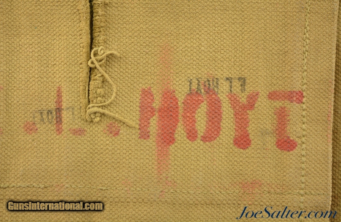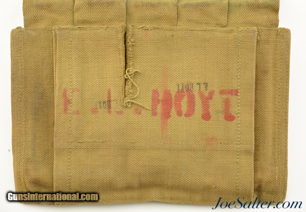 Description: This is an original olive green Us magazine pouch for the Thompson 20 round stick magazines. It is marked E. L. Hoyt and is in good to very good condition with some discoloration, age soiling and signs of heavy use with a cut between two of the pouches. All of the hardware and stitching are in good+ condition and function well. Looks like it was there.; Price: $89.00 Contact Seller |