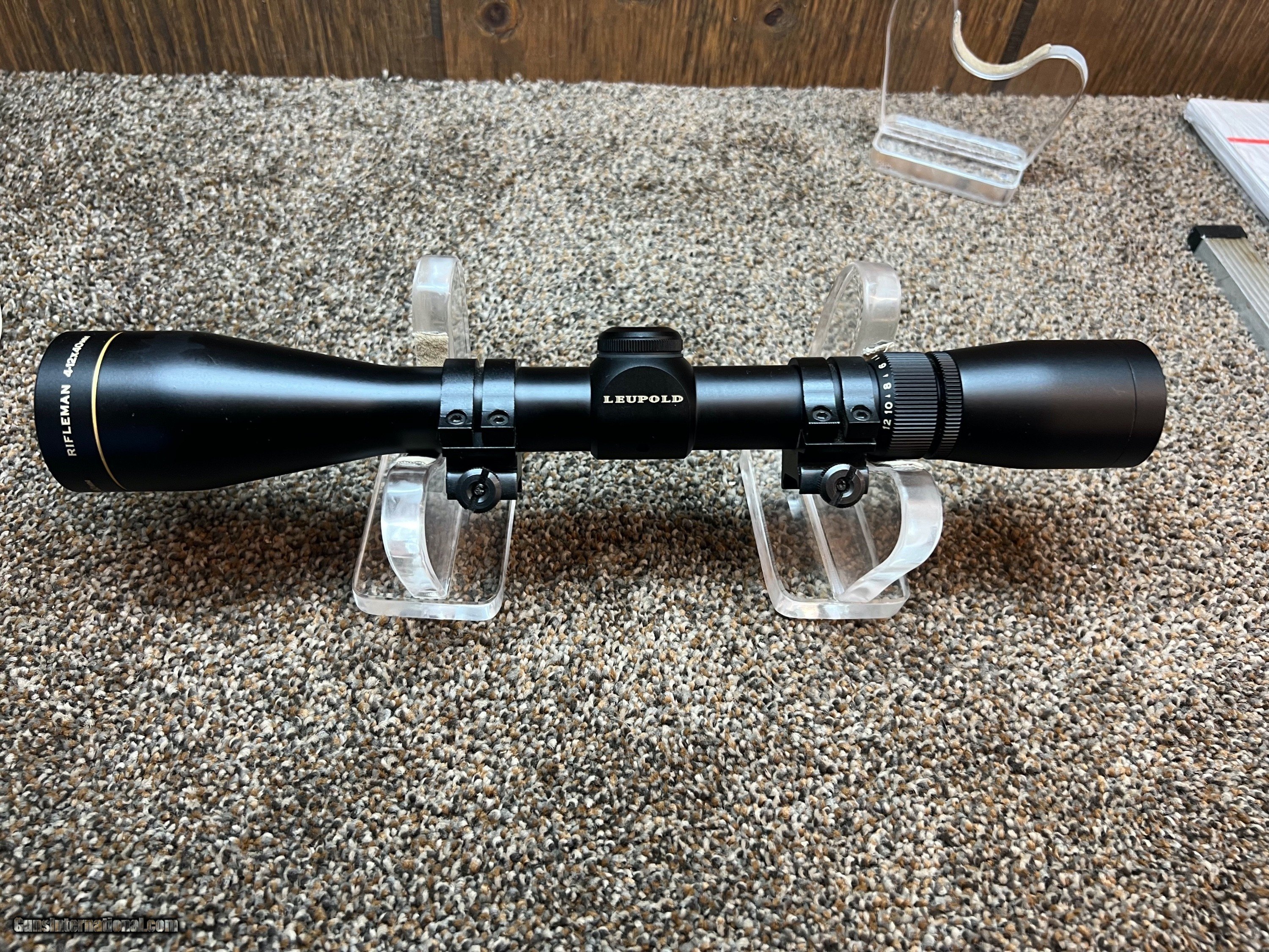 Description: Here's a nice used Leupold Rifleman 4-12x40 matte finish scope, with Weaver quad rings, duplex reticle. 2.99% credit card payment, 20.00 shipping, PA residents add 6% sales tax. SOLD |