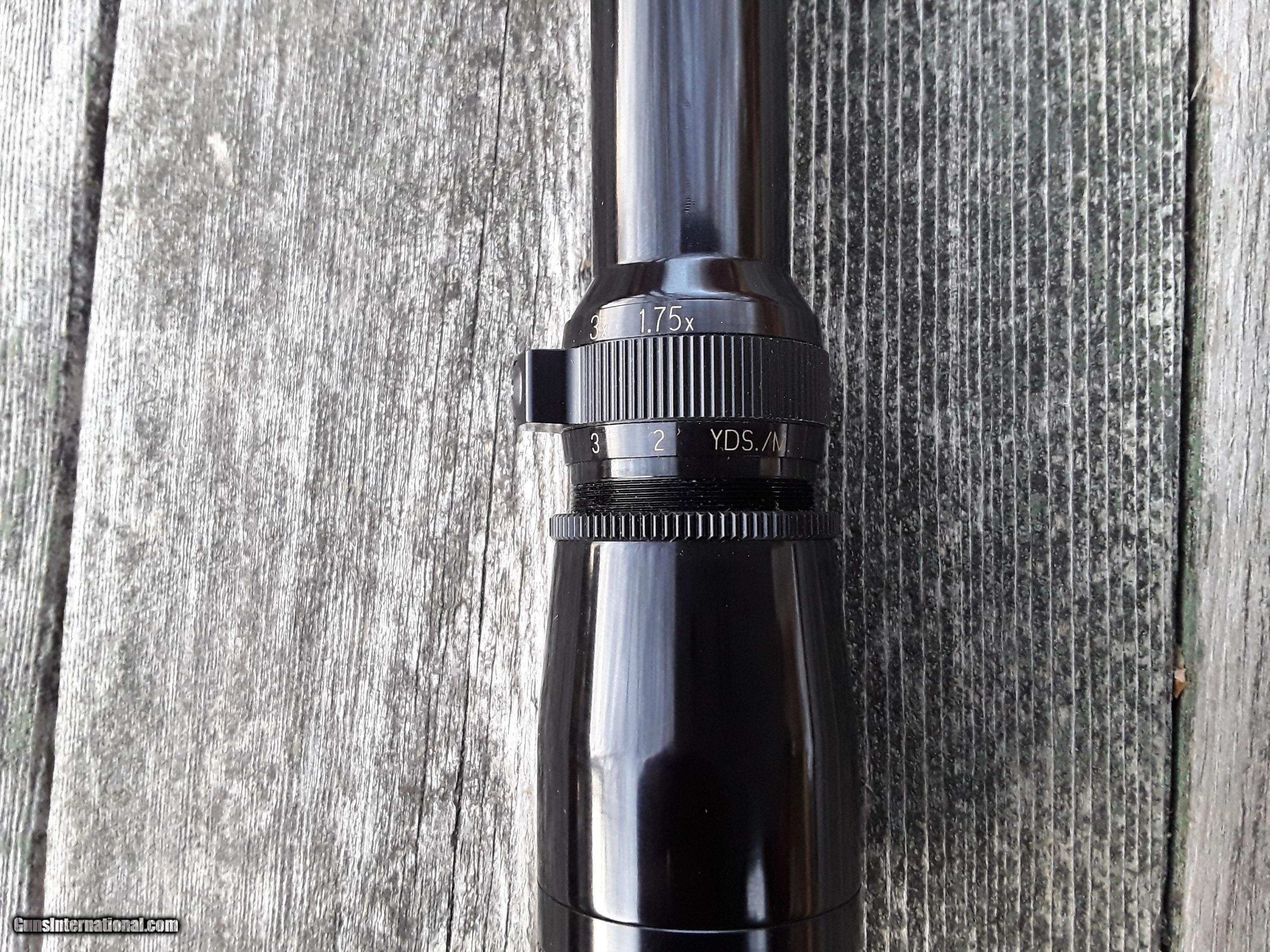 Description: Leupold VarI X III 1.75x6 32mm gloss in excellent condition with one very faint ring mark on the rear tube. Glass is excellent. Standard plex reticle. I've seen these called short scopes because the front tube is shorter than the standard 1.75x6. Leupold didn't make these very long in this configuration and is pretty rare in gloss. $500 plus actual shipping costs. USPS money order please. SOLD |