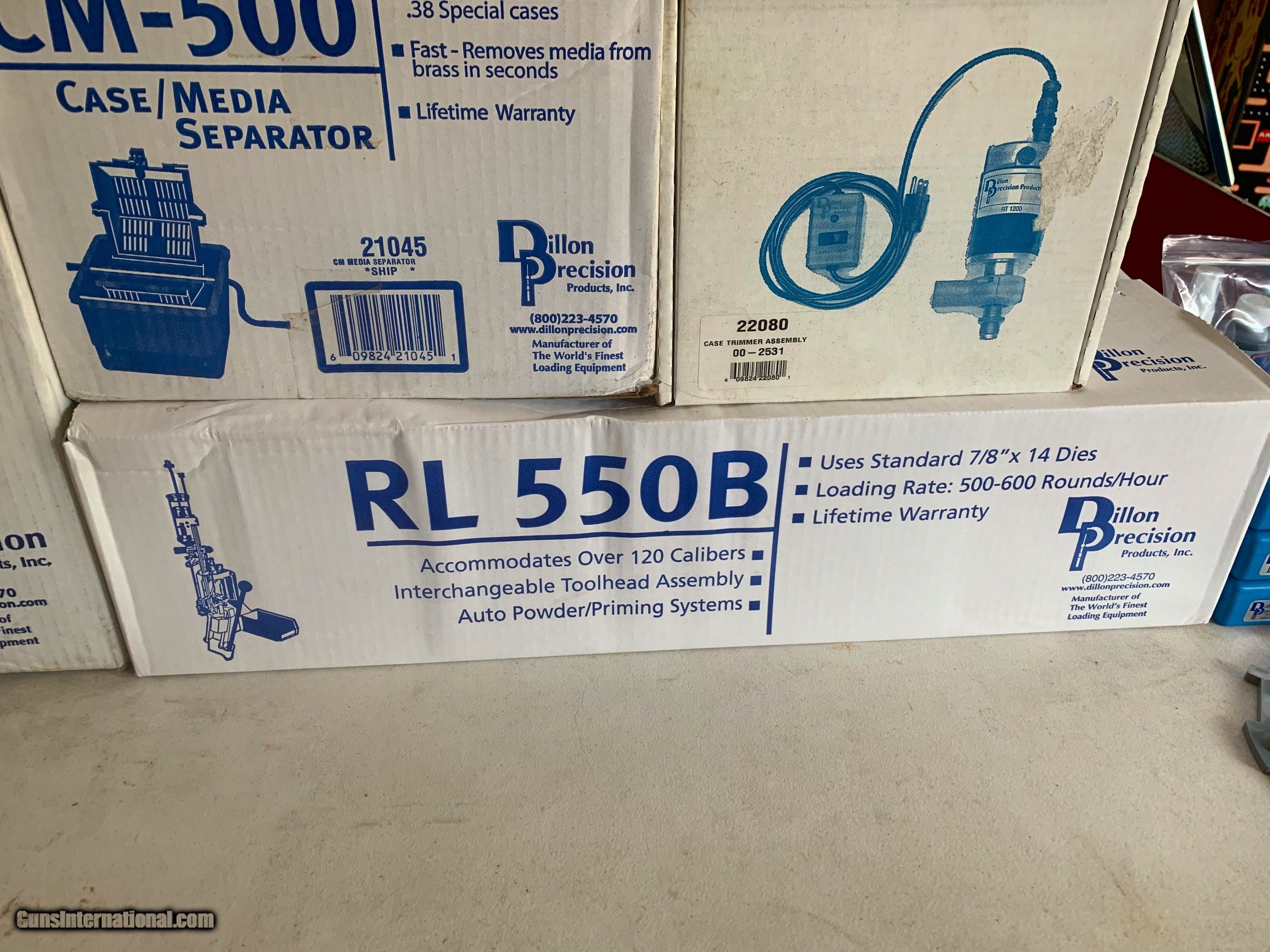 Description: RL550B AND XL650 NEW IN BOX RELOADERS - NEVER BEEN USED! Comes with the following accessories: 650 Casefeeder SM Rifle; Bullet Tray Kit (2); Case Trimmer Assembly; Empty Cartridge Bin Kit (2); Carbide Die Set 45ACP 45GAP; Carbide Die Set 38/357; 550 Conv 38/357, 38LC; 550 Conv 45 ACP; Dillon Die Set 223; Case Trim Die 223; 550B Toolhead; Brass Polish 290; Dillon Case Lubricant; D-Terminator Scale; handle w/Alum. Roller(2); 550/650 Machine Mount (2); Small Media Separator; CF Plate SM Rifle; 650 1050 Casefeeder; CV 750 Tumbler Everything you need to start reloading - Heavily Discounted - Serious buyers please call for questions - Bryan 504.258.5201. SOLD |