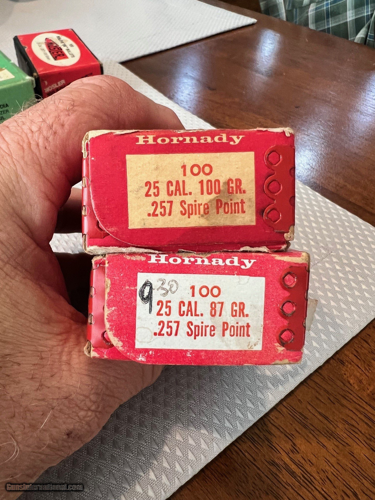 Description: (2) Boxes of Hornady reloading bullets (1) box of 100 25 Caliber 87 Gr. Spire Point (1) box of 100 25 Caliber 100 Gr. Spire point $60.00 for Both; Will not separate. Price includes shipping to the lower 48 states. SOLD Rifle Caliber: .257 Roberts |
