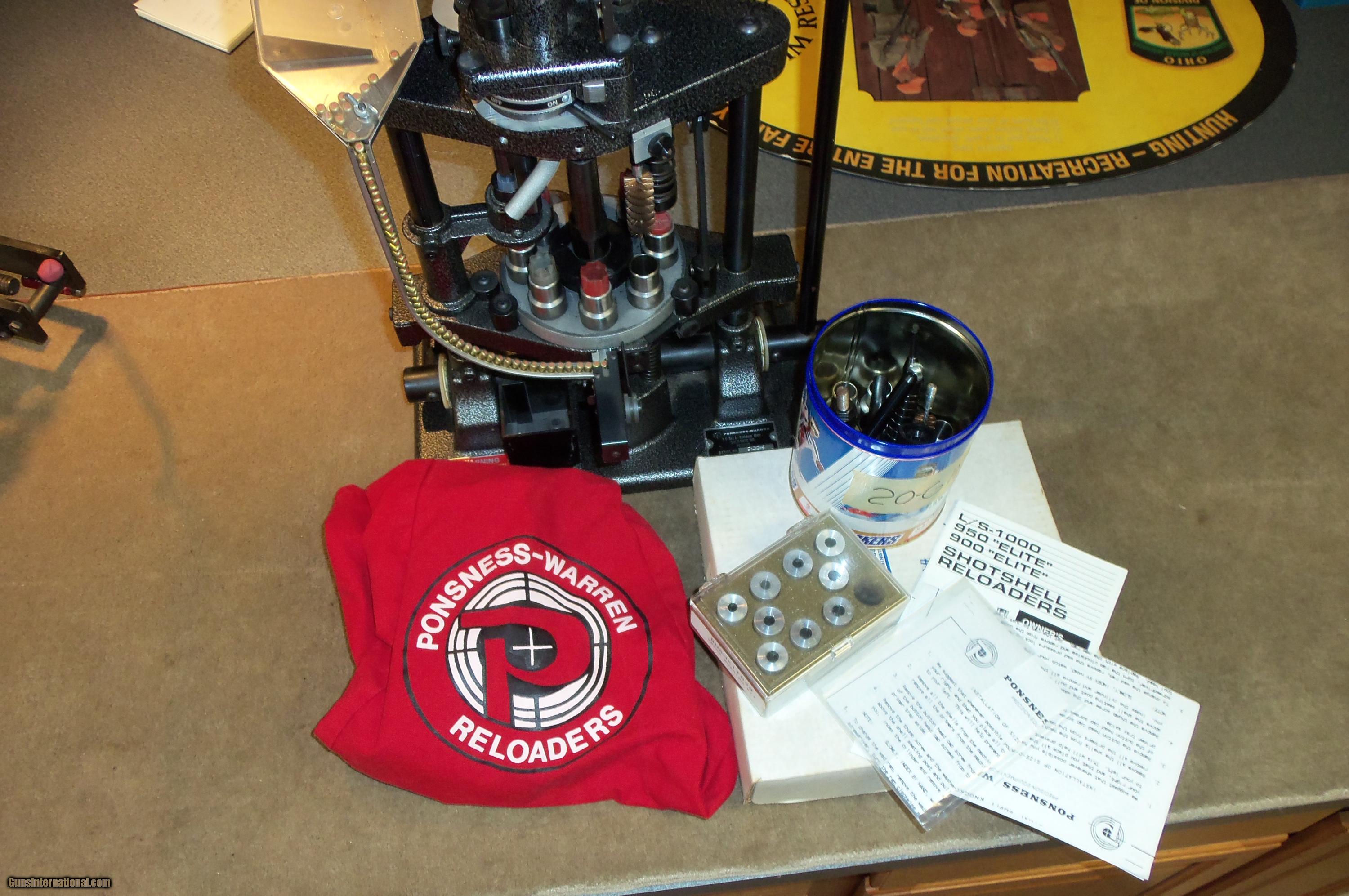 Description: PONSNESS-WARREN SIZE-O-MATIC MODEL 900 SERIAL# 946 PROGRESSIVE SHOTSHELL RELOADER. LOADS 12 GUAGE, 20 GUAGE, AND 28 GUAGE SHELLS THIS MACHINE DOES NOT RELOAD SHELLS, IT REMANUFACTURES THEM. RELOADS WILL RUN IN ANY AUTOLOADER WILL LOAD 750 SHELLS IN AN HOUR AS NEW, CANNOT BE TOLD FROM NEW MACHINE PRICE IS $725.00 FOR ALL. 330-343-3326 SOLD |