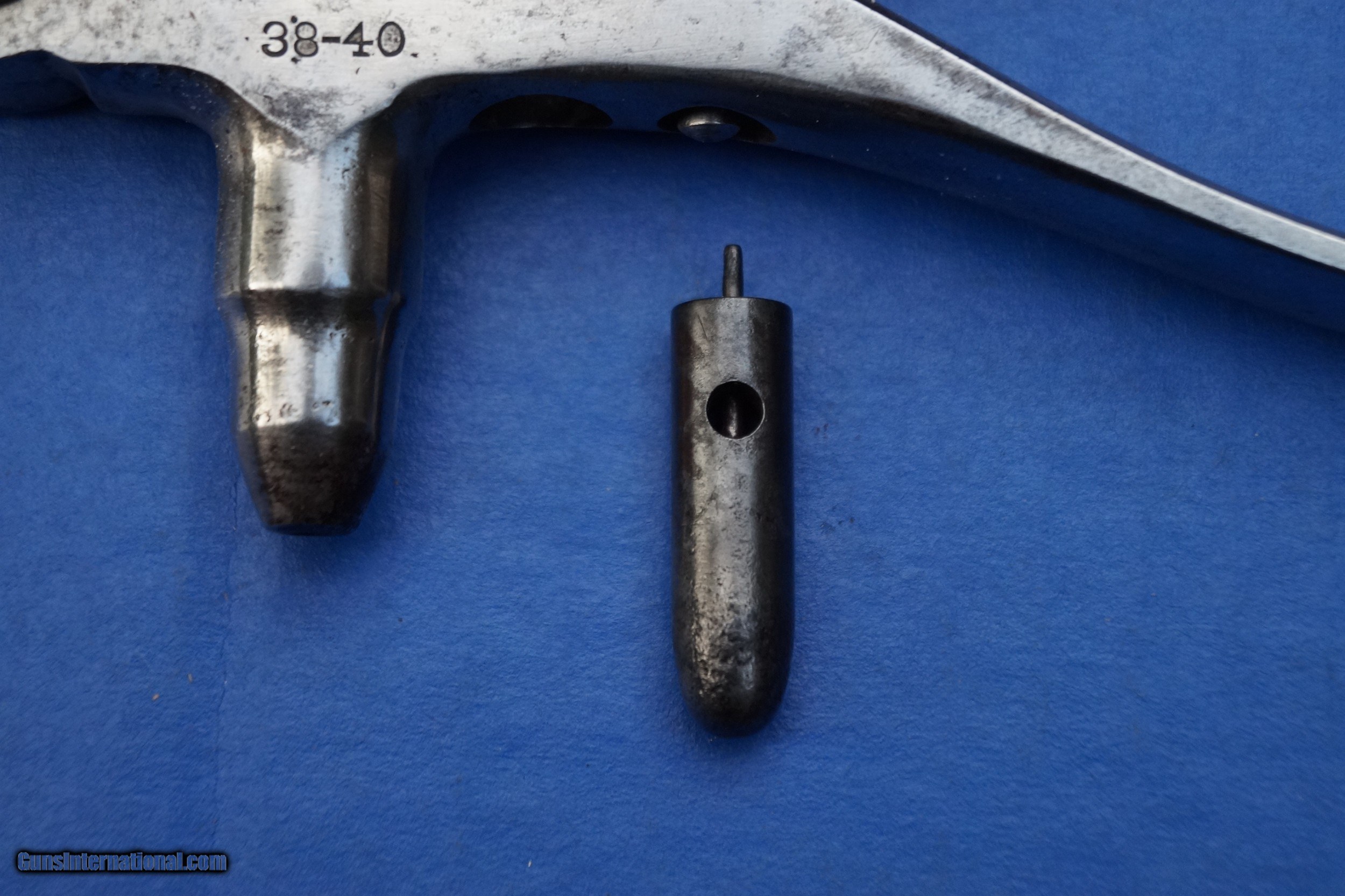 Description: Nice all in one Ideal Combination Loading Tool and Bullet Mold for the 38-40 that comes with the almost always missing decapping pin for removing spent primers. This tool is in near excellent condition overall with 95% of its original nickel plating, a great bullet cavity, and nice markings. Ideal tools were sold as accessories with Colt Revolvers like the Colt Single Action Army, Model 1878 Double Action, New Service, and Colt Lightning Rifles and Carbines. These were also sold as accessories to the Marlin Models 1889 and 1894 Lever Action Rifles. Although Winchester made their own loading tools, the advantage of the Ideal was that it was simply one tool compared to Winchester which made you buy the bullet mold and reloading tool as two separate pieces. These were made for simple-handloading using black powder and cast lead bullets out on the American Frontier. SOLD |