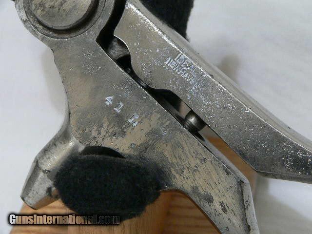 Description: 8. Ideal Reloading Tools No 4 in 41 Long Colt with decapping pin Heeled bullet mould in Inside Lubricant Original box 35% nickel On the side of mould is (IDEAL MFG Co. New Haven, CONN. U.S.A and 41 L.) The pictures are the best description. Check them carefully. If you Phone then call from 7:00 AM and 6:00 PM Central time. + Shipping is $15.00 SOLD Handgun Caliber: .41 Long Colt (.41 Colt, .41 LC) |