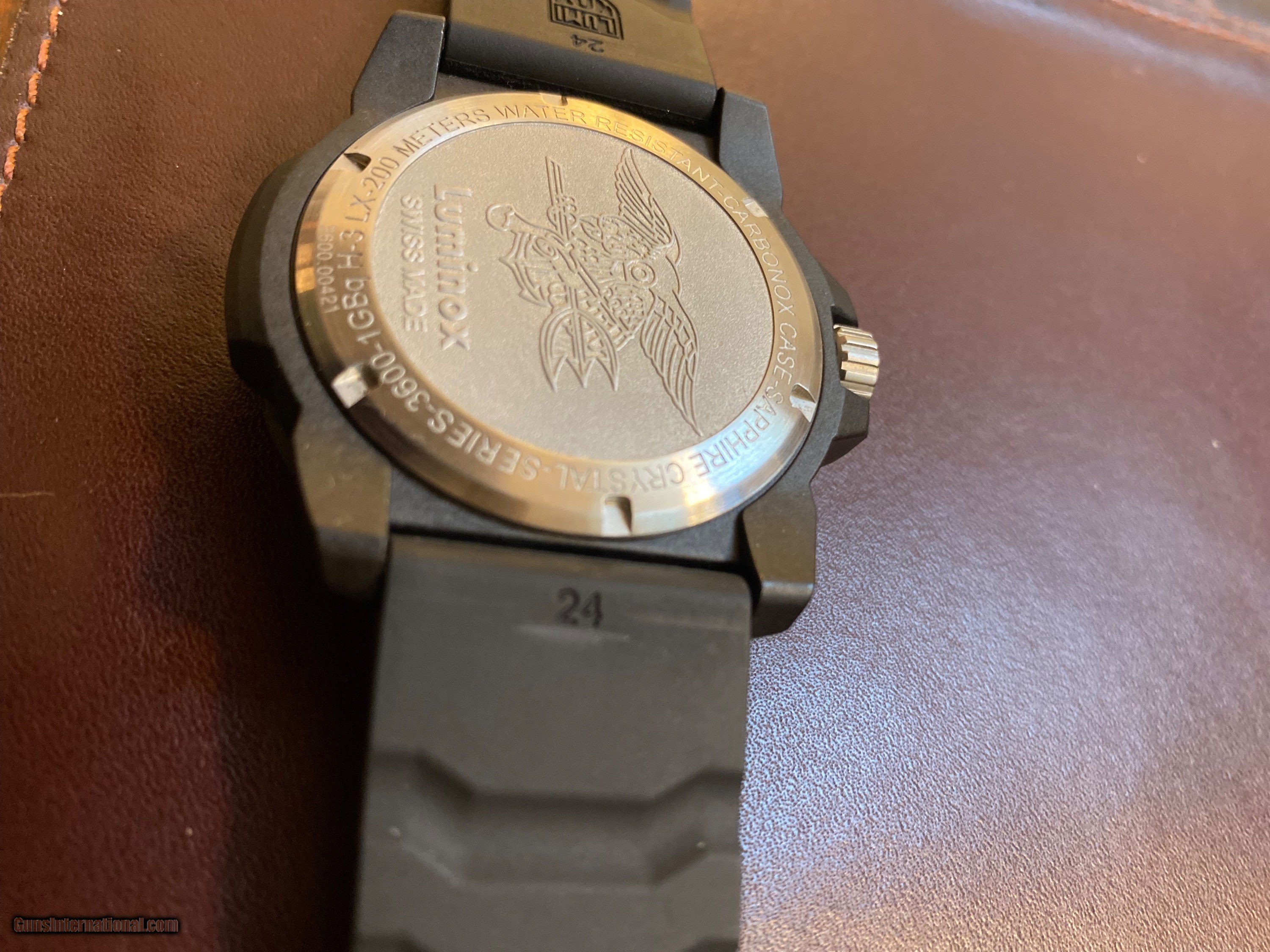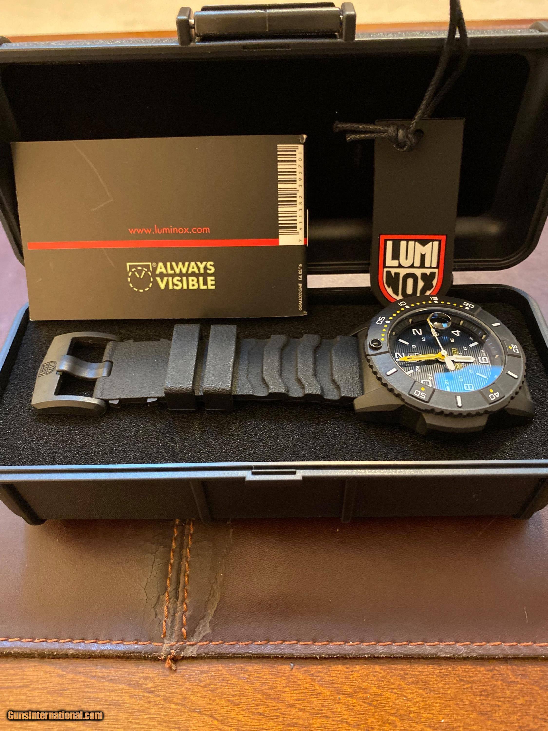 Description: Here is a never worn Luminox Navy Seals 3600 Series Black with a magnified date window. The time markers are Always Visible with this Luminox series watch, so that the time is visible during the night. This Swiss Made watch is stylish and as durable as you can buy. An outstanding watch for first responders or anyone with a job that needs a strong time piece. Thank you for looking and remember it is always "GO TIME"!!!! $175.00 SOLD |