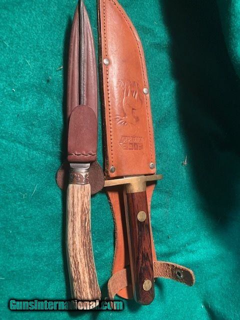 Description: Sheffield knives - 1- WW Harrison Silver Miths& Cutlers, vintage, carbon steel. $90.00 plus shipping 2- Bowie Knife- William Rogers, Englad. $90.00 plus shipping. For more information call Rick at 973-478-5066. SOLD |
