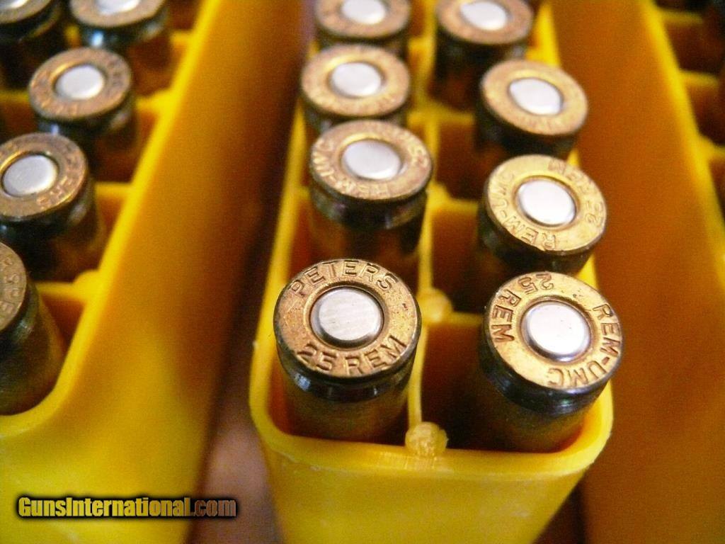Description: Sold toMr Trapp// These rounds are Remington Peters brass, loaded ammunition, as was used in the Remington Model 8 or Model 14. I am not offering them as loaded ammo...I am selling them to anyone who is in need of 25 Remington brass. I am selling them as brass you can reclaim and re-use by pulling the bullets and dumping the powder. You might want to re-anneal the brass too. I do know that its very hard to find this brass. Strength and Honor! SOLD |