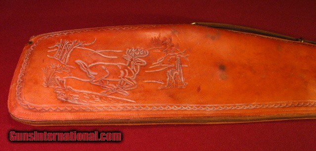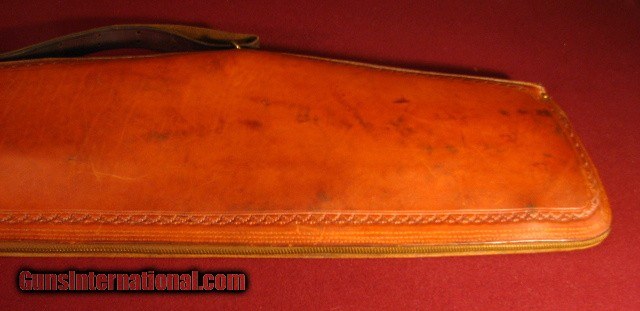 Description: Boyt Harness Co. Des Moines, Iowa 46" case for scoped rifle up to 46". This case made of heavy harness leather with saddle blanket lining. Outside shows light scuffs and staining but lining shows no sign of heavy use. Replacement strap. Made to last. They don't make em like this anymore! SOLD |