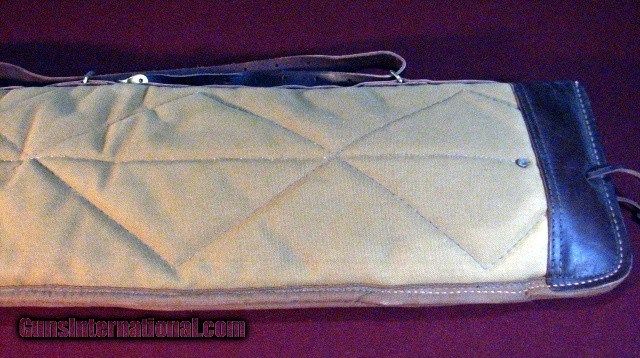 Description: Boyt takedown canvas and leather shotgun case for barrels up to 30" YKK zipper. Outside storage pouch. Quiltrd cloth interior. Very good condition. SOLD |