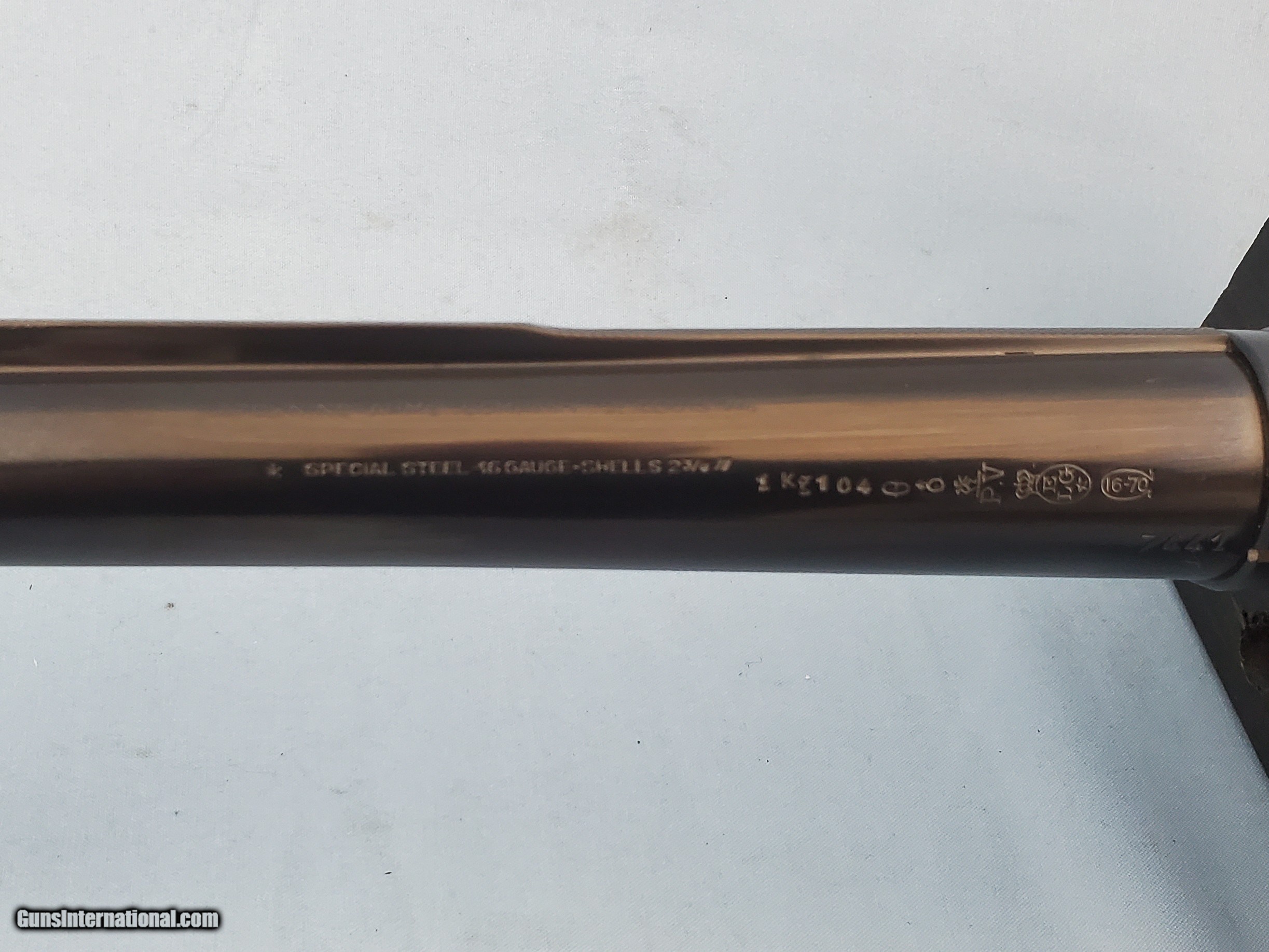 Description: MADE IN BELGIUM. 28'' WITH A SOLID RIB AND CHOKED FULL. REBLUED AND LIKE NEW. PLEASE ADD $35 FOR SHIPPING. SOLD Shotgun Gauge: 16 Gauge |
