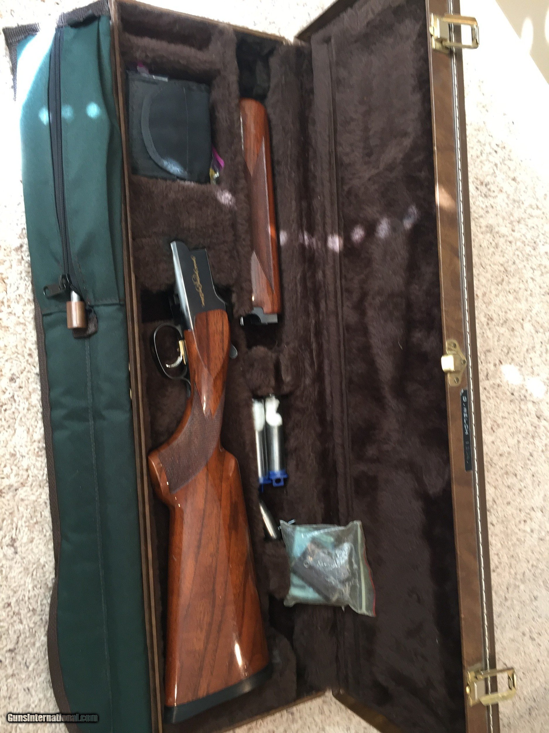 Description: .12 Gauge receiver, stock and forend, 8 -.12 choke tubes, .20 guage companion tubes with four chokes, BRowning hard case, and barrel weight. SOLD |