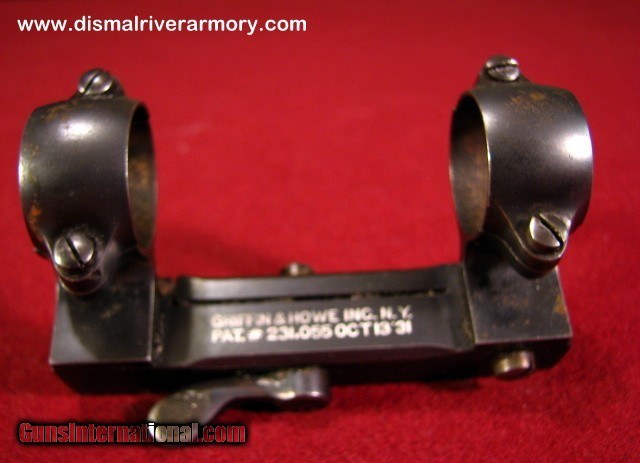 Description: Early vintage all steel Griffin & Howe single lever sidemount with 7/8" rings. Base not included. Almost impossible to find anymore. SOLD |