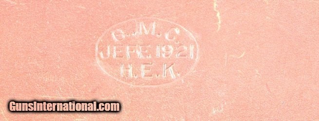 Description: JEFFERSONVILLE DEPOT U.S. CAVALRY LEATHER DOUBLE .45 CAL. AUTO PISTOL MAGAZINE POUCH DATED 1921. Excellent condition. Back with oval Quatermaster Corps cartouche (Q.M.C./JEFF. 1921/H.E.K.). Front of pouch with “MB” inspector’s stamp. Nice example and quite hard to find. SOLD |