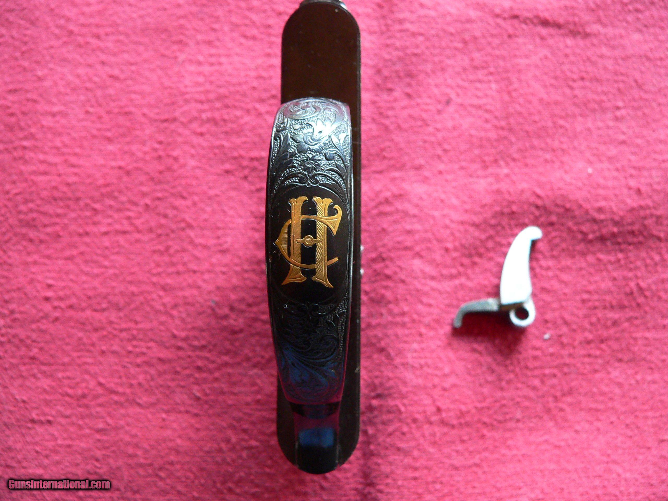 Description: REDUCED AGAIN Perazzi, Model MX-8 etc. O/U Triggers Group. Comes with Factory release (lower barrel). Trigger guard is fully engraved with initials C – H in gold. Metal condition is 99%+. Does not look like it was used very much! SOLD |
