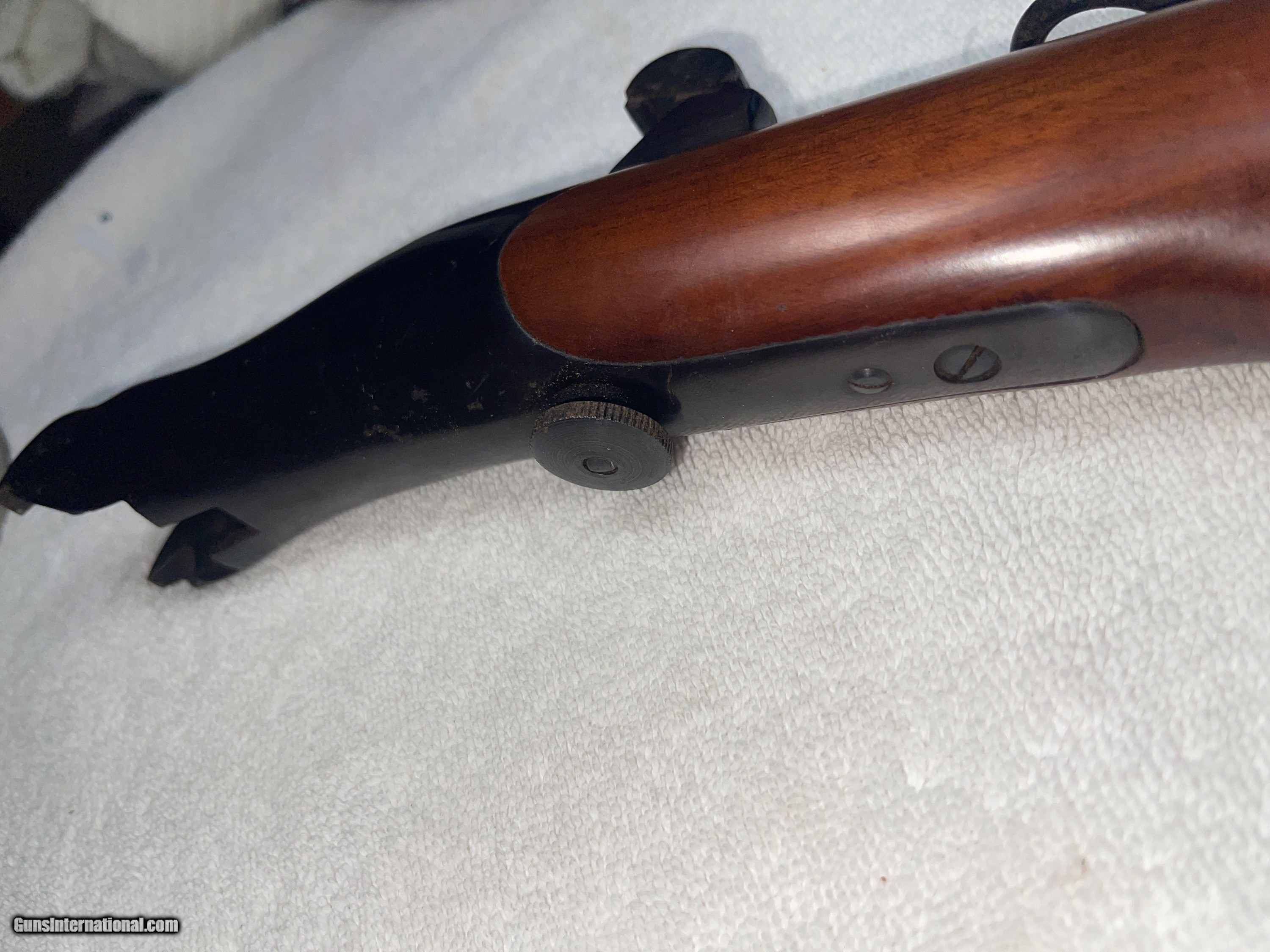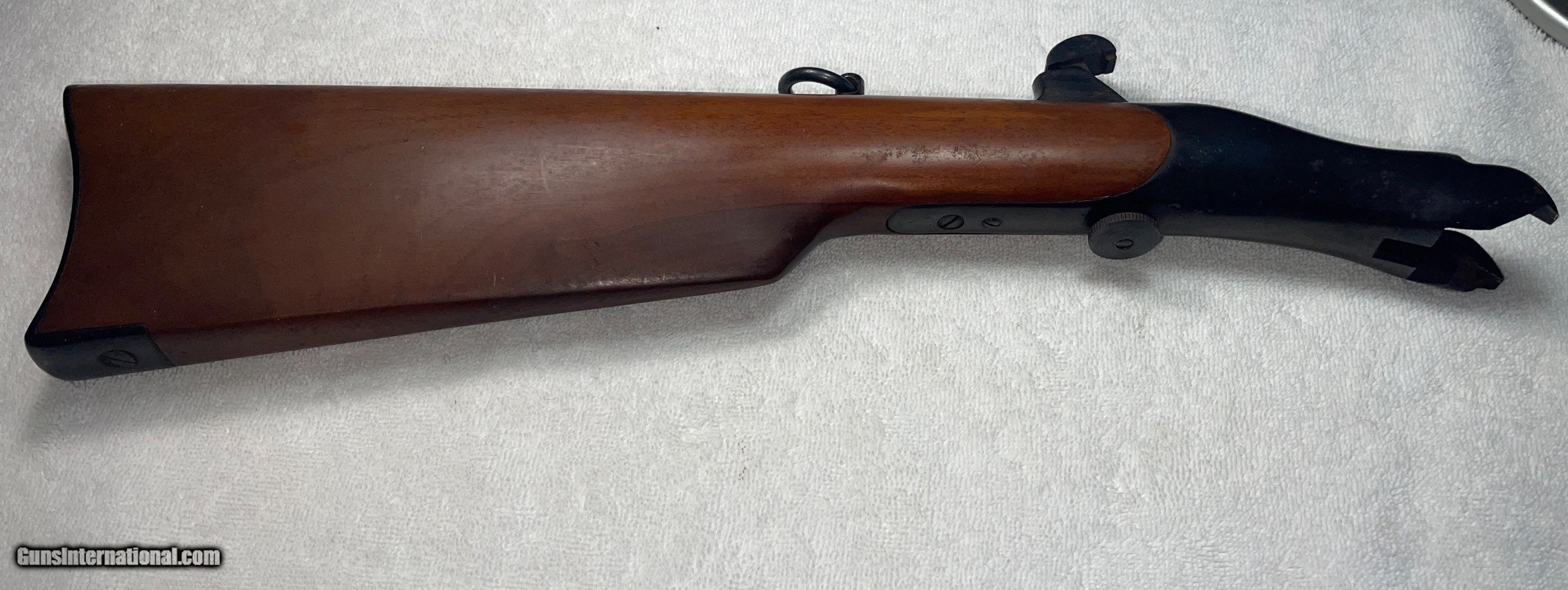 Description: We are offering what appears to be an unused all steel repoduction buttstock. It appears to be substantially different than others that we seen. it is totally made of machined steel and blued rather than brass castings. The result is, that it gives the gun a total Colt factory look. The condition of the blued parts is about 99.+ % remaing of the original factory blue. The total loss is due to some very slight scattered scuff marks from handling. The beautiful wooden stock has also retained a like amount of loriginal factory lacquer. This is also due to some very slight handling marks. If you wood like to turn heads at your next re-enactment or could use a centrpiece for that collection, here'the accessory that will do it. Modestly priced to suit anybodies budget, Price: $295.00 Contact Seller |