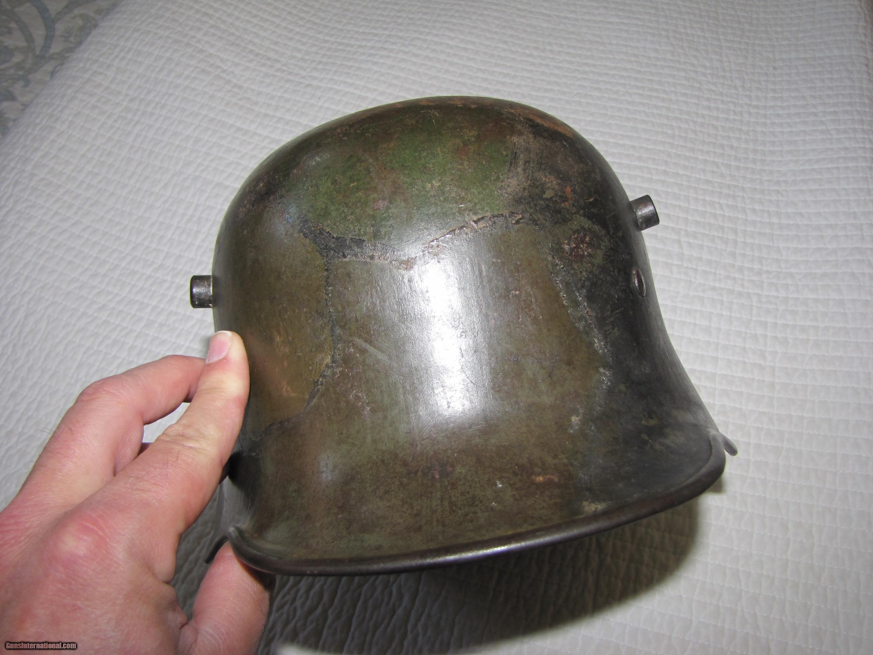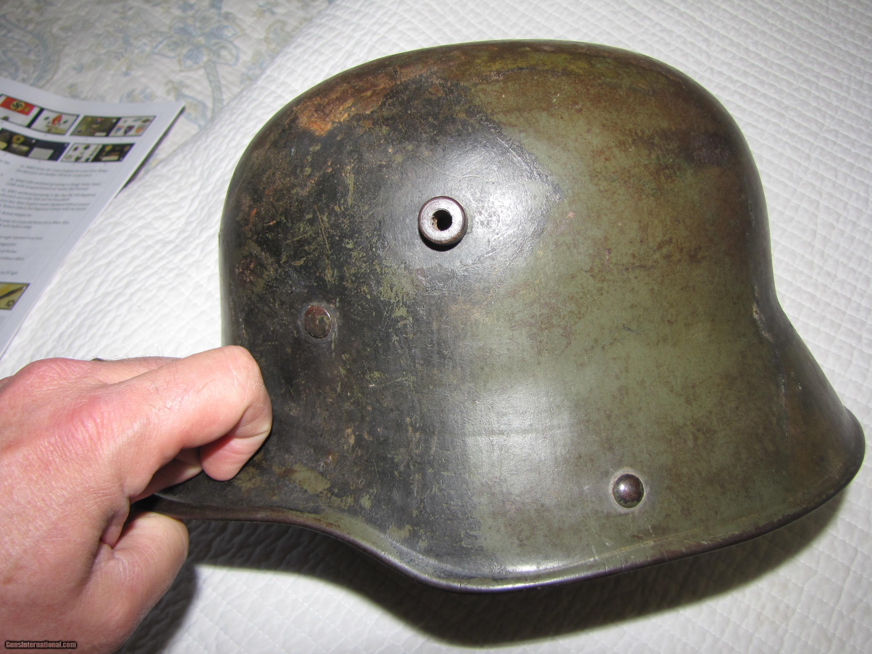 Description: This camo german helmet is amazing , signed in the back Lieutenant J.W. HUFFMAN, RED ARROW 32RD DIVISION, 120TH MACHINE GUN BATTALION, this Michigan national guard infantry soldier, later moved to Ohio. This helmet was purchased by me ,from the estate of David Dugan, a collector of the highest quality, I also purchased a medallion from Hitlers desk,taken by his maid. This helmet is lined , Huffman was in a machine gun battalion, also known '' SUICIDE SQUADS'' IN THE BRITISH service of the 170,500 who severed in these squads 62,049 became casualties. This is a M 18 EISENHUTTEWERK , SCHLESIEN ,PARUSCHOWITZ/ OBERSCHLESIEN. CALL 859-533-5445 SOLD |
