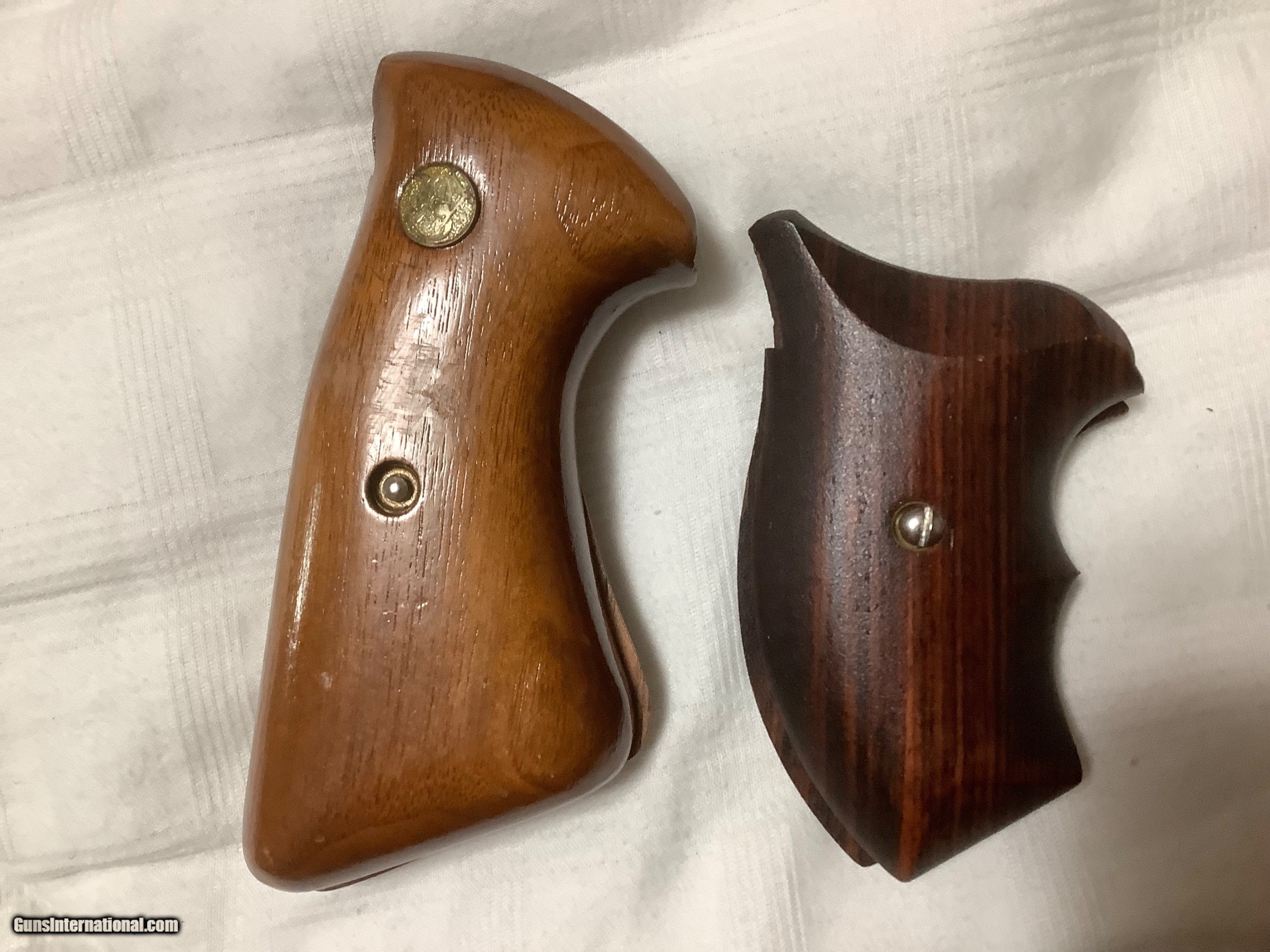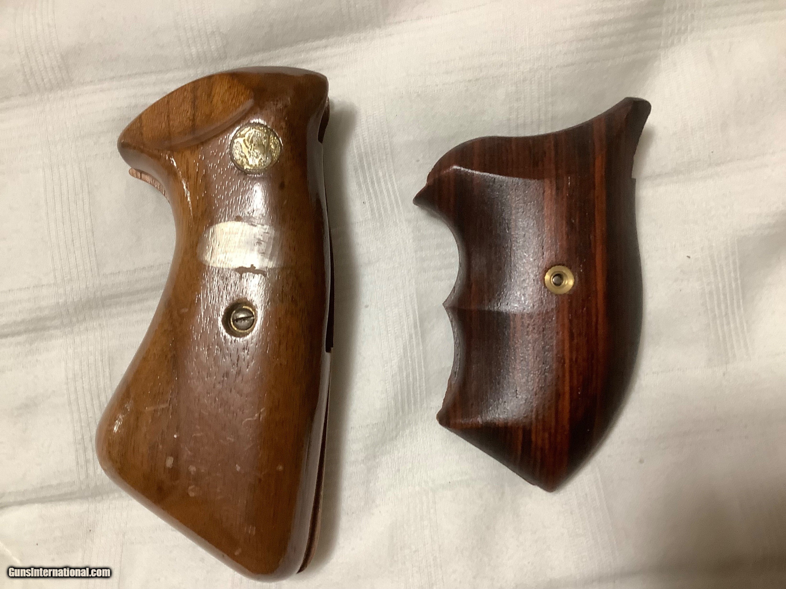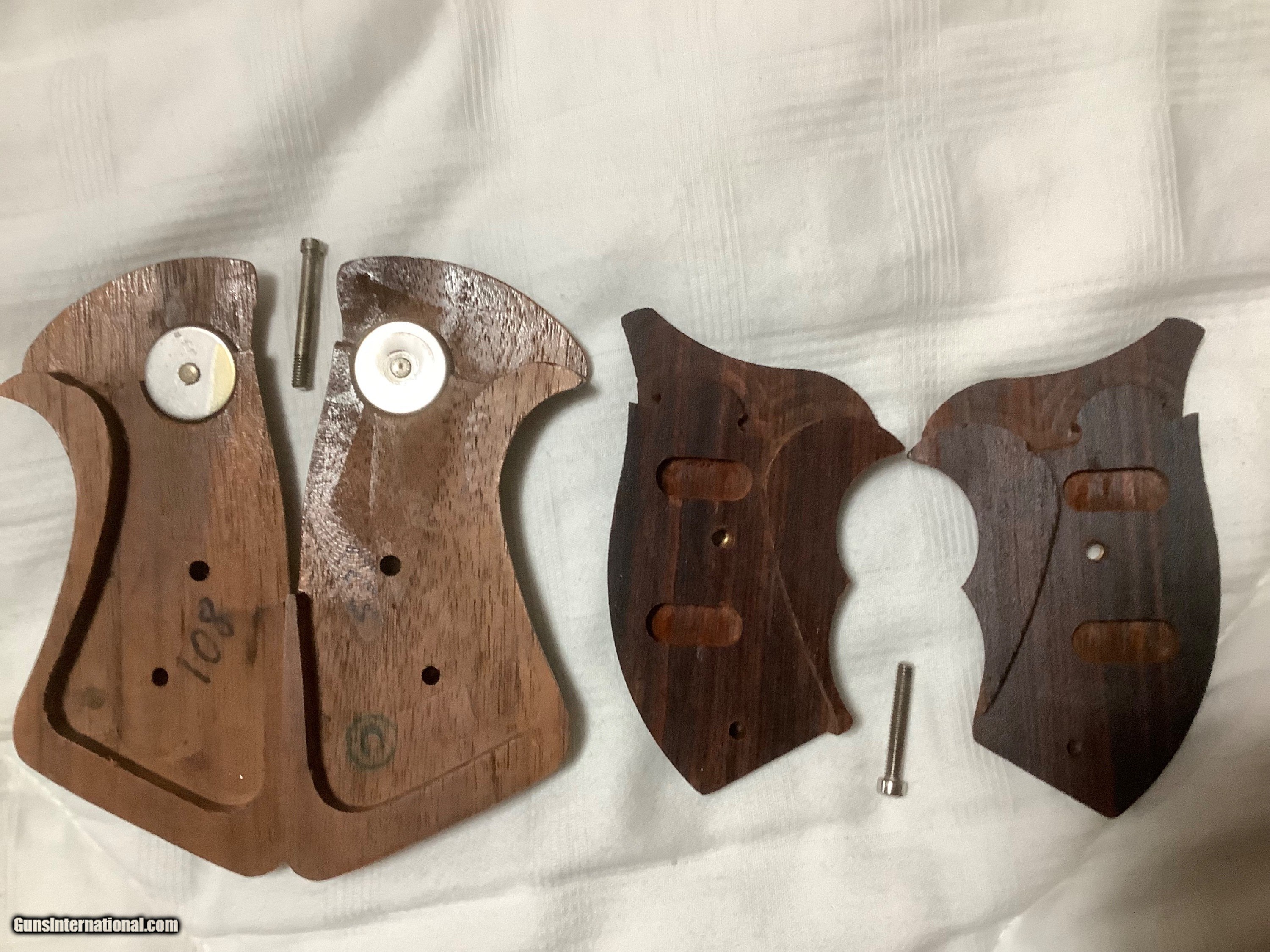 Description: Two pairs of S&W J frame grips. Larger pair are target grips fit either round butt or square butt 85. Includes shipping. Smaller pair are Ahrends boot grips for round butt j frame only, have tried to show small sliver of wood missing in pics. These grips have gone over 200. now that he is out of business. This pair 150. includes shipping. Price: $85.00 Contact Seller |