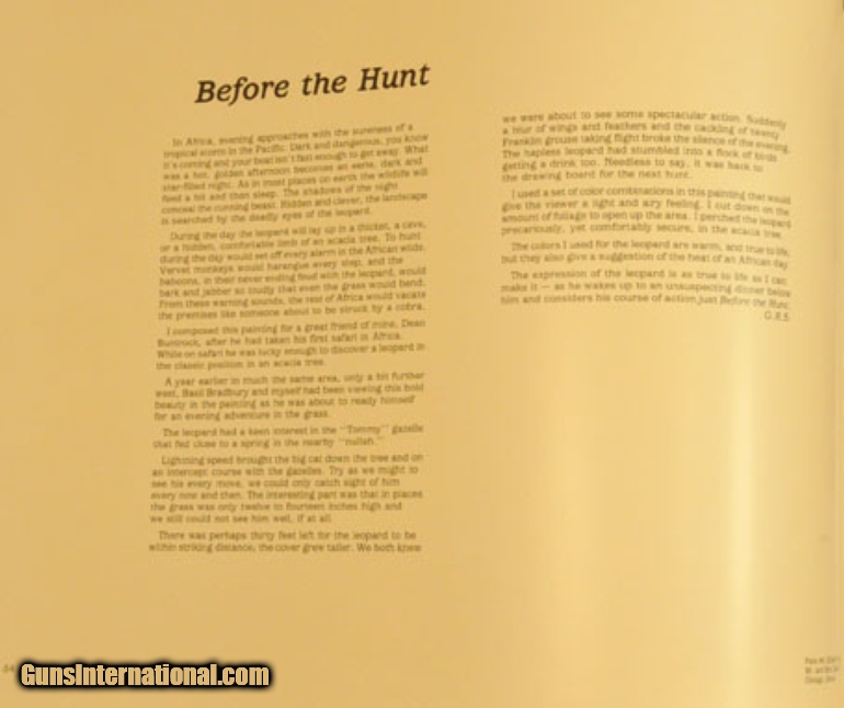 Description: Gary R Swanson's "World of Wildlife Paintings"- No. 287 of 500 remarqued books with original bronze on the cover- All in the original half clam shell and original Wolfe Publishing shipping box. A fabulous book from a renowned wildlife artist. SOLD |
