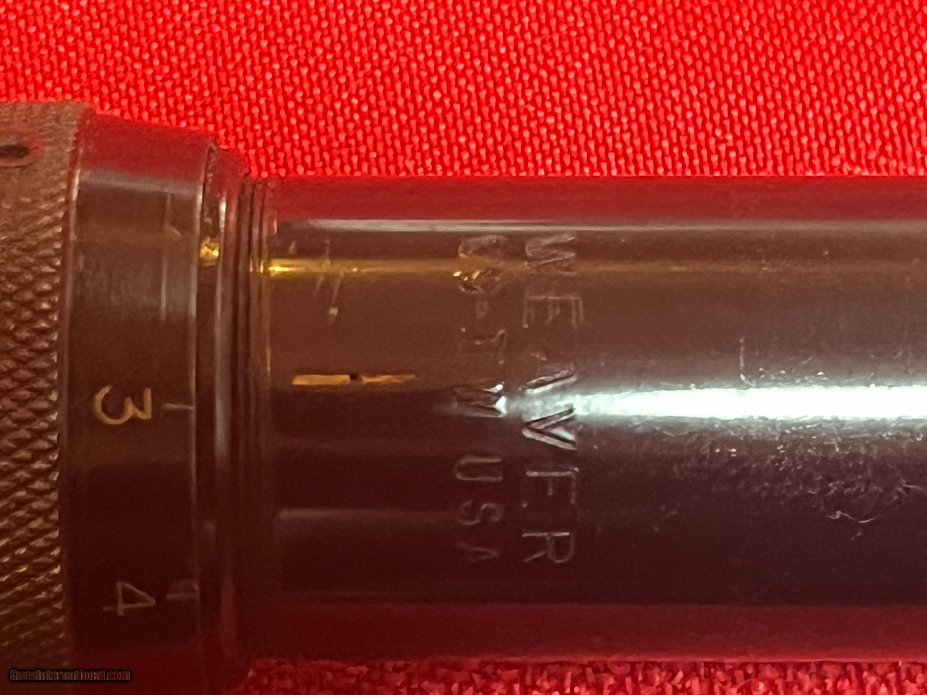 Description: Vintage Weaver 3X9 AO scope.Duplex reticle. Clear glass. Good cosmetics. Length 14". Price: $125.00 Buy Now Contact Seller |