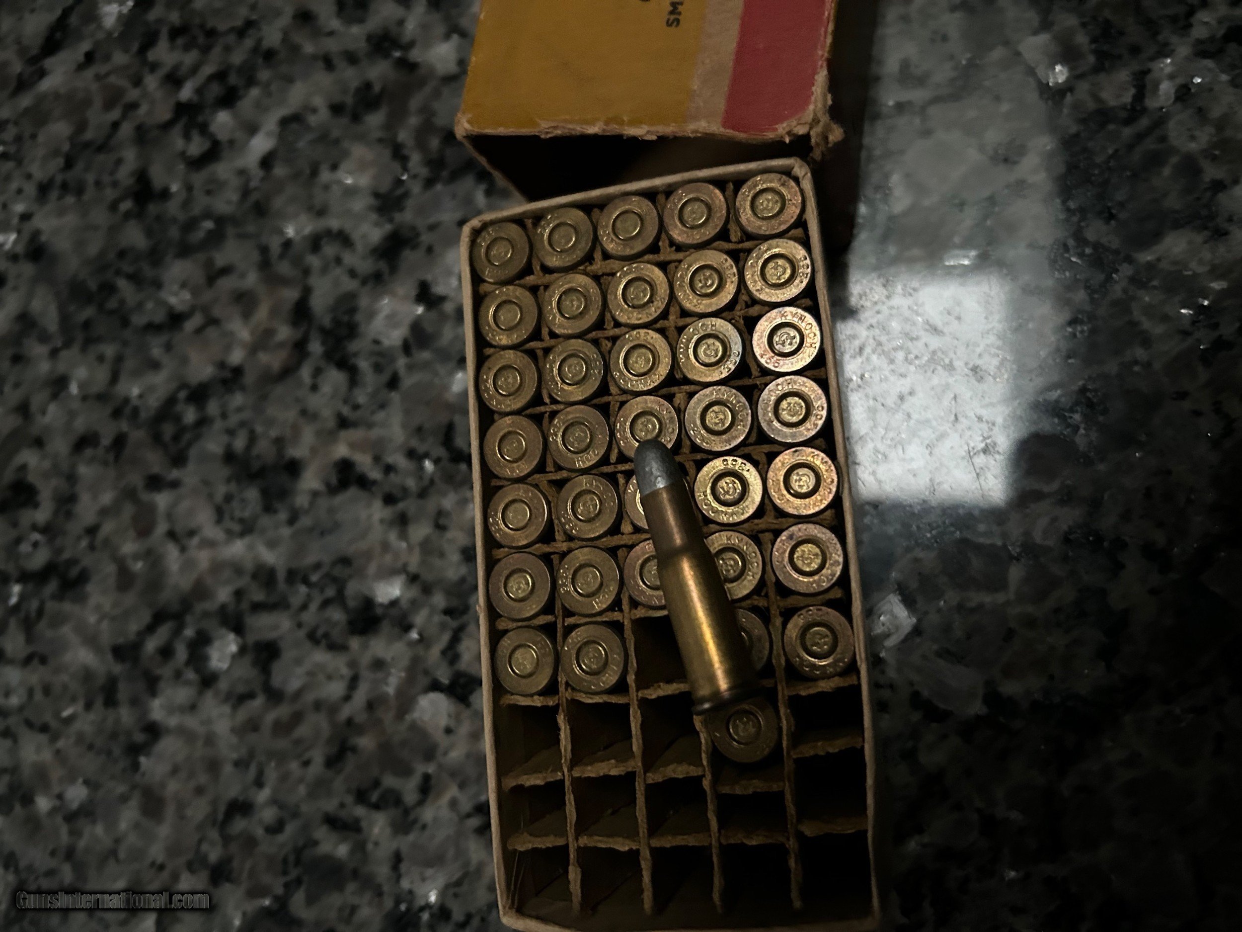 Description: Here we have a very rare box of obsolete Jeffery .255 Rook. It contains 36/50 of its factory rounds. Ammo looks in great shape and fired well a few seasons ago. Box has seen better days, it's missing a flap. Sold my rook rifle collection, only a few boxes of ammo remain. Very very rare box for very rare guns. I work long hours and also farm, so email is probably best. Please be patient if it takes a few hours to return a call. Thank you. Price includes shipping to continental U.S. Please know your state laws and play by the rules. I have no problem shipping the ammo to your FFL if that is require in your state or area. I accept check or money order only. Please send proof of age or Illinois FOID card with funds. Thank you. SOLD Rifle Caliber: .255 Jeffery Rook |