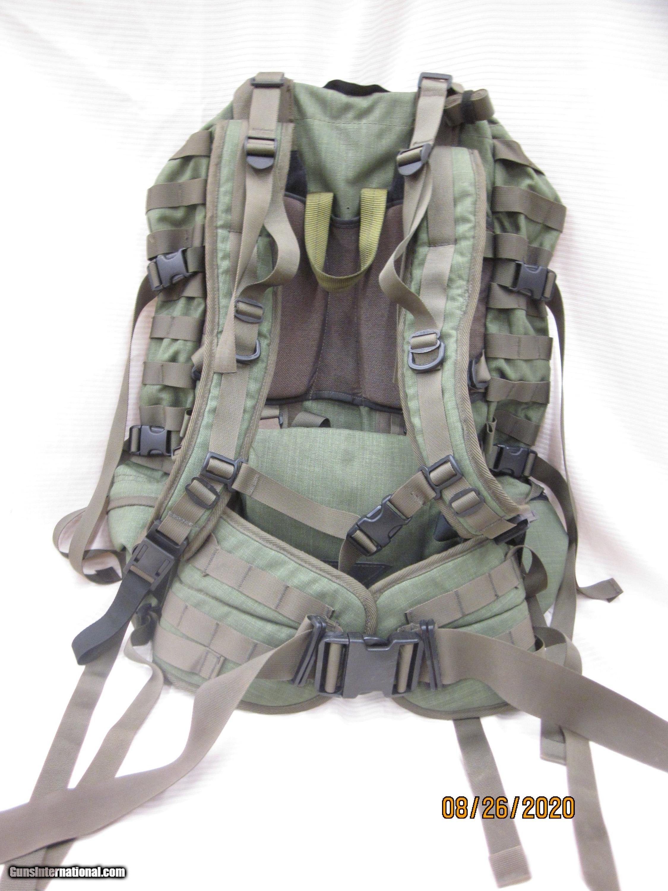 Description: This offer is for a used Eberlestock Jackhammer pack in Dry Earth. From Eberlestock: The F52 Jackhammer is scaled to the original ALICE frame, which was distinguished by its ideal size as a base for a military pack. Using the frame as a core structure, Eberlestock developed an entirely new style of pack that has amazing utility and versatility. With its compact size, it incorporates features and qualities that have made Eberlestock packs famous. Because the frame is fully wrapped in the structure of the pack, we've eliminated frame noise and have built an exceptionally comfortable and well ventilated pack. The F52 is a great stand-alone pack, with ample 3-day-class storage and two pockets sized for 70 oz/ 2-liter hydration bladders. It features an articulating back wall, with a tunnel for installing the Eberlestock scabbard accessory of your choice. PRODUCT INFO