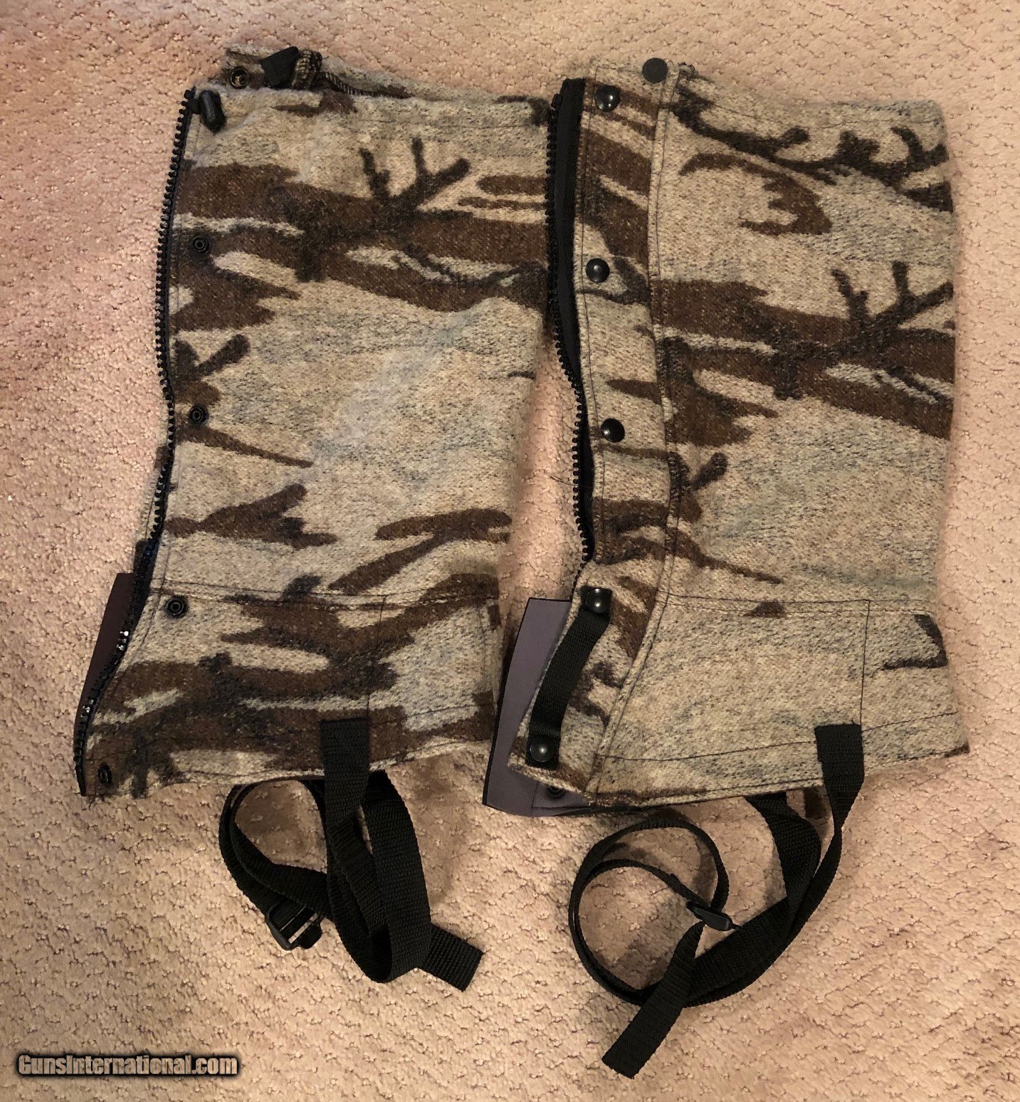 Description: Premium woven wool Stalker Gaitors for the ultimate in quiet warmth and protection that keeps out snow and debris. Quality and robust construction throughout. King of the Mountain products are built to last a lifetime. Blowdown camo pattern. New/unused. These retail for $260+ Price includes shipping. Thank you. SOLD |