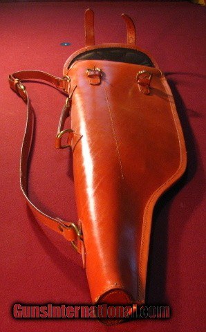 Description: Heavy harness leather Leg of Mutton style shotgun case for barrels up to 30". Lined with a canvas type cloth. All fittings are brass. New and unused. Not maker marked but obviously very high quality. Price: $275.00 Buy Now Contact Seller |