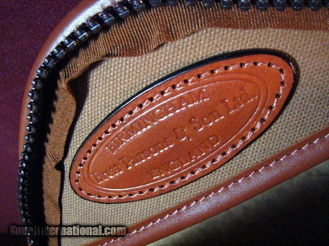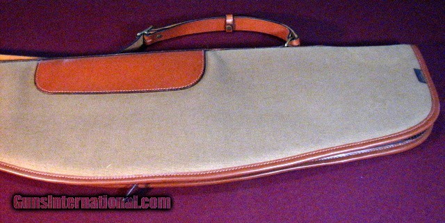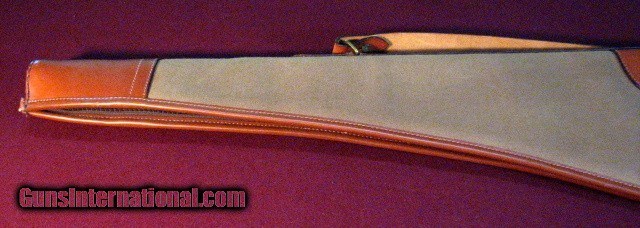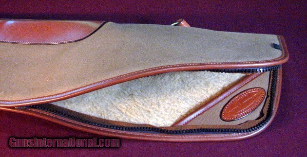 Description: Brett Parsons & Son Ltd. Birmingham, England very high quality and heavy built canvas and leather scoped rifle case with genuine fleece lining. Overall length of 48 inches with full length YKK zipper. With carry strap and hanging loop on muzzle end. This company has been in business over 30 years building only the highest quality accessories. New and unused. SOLD |
