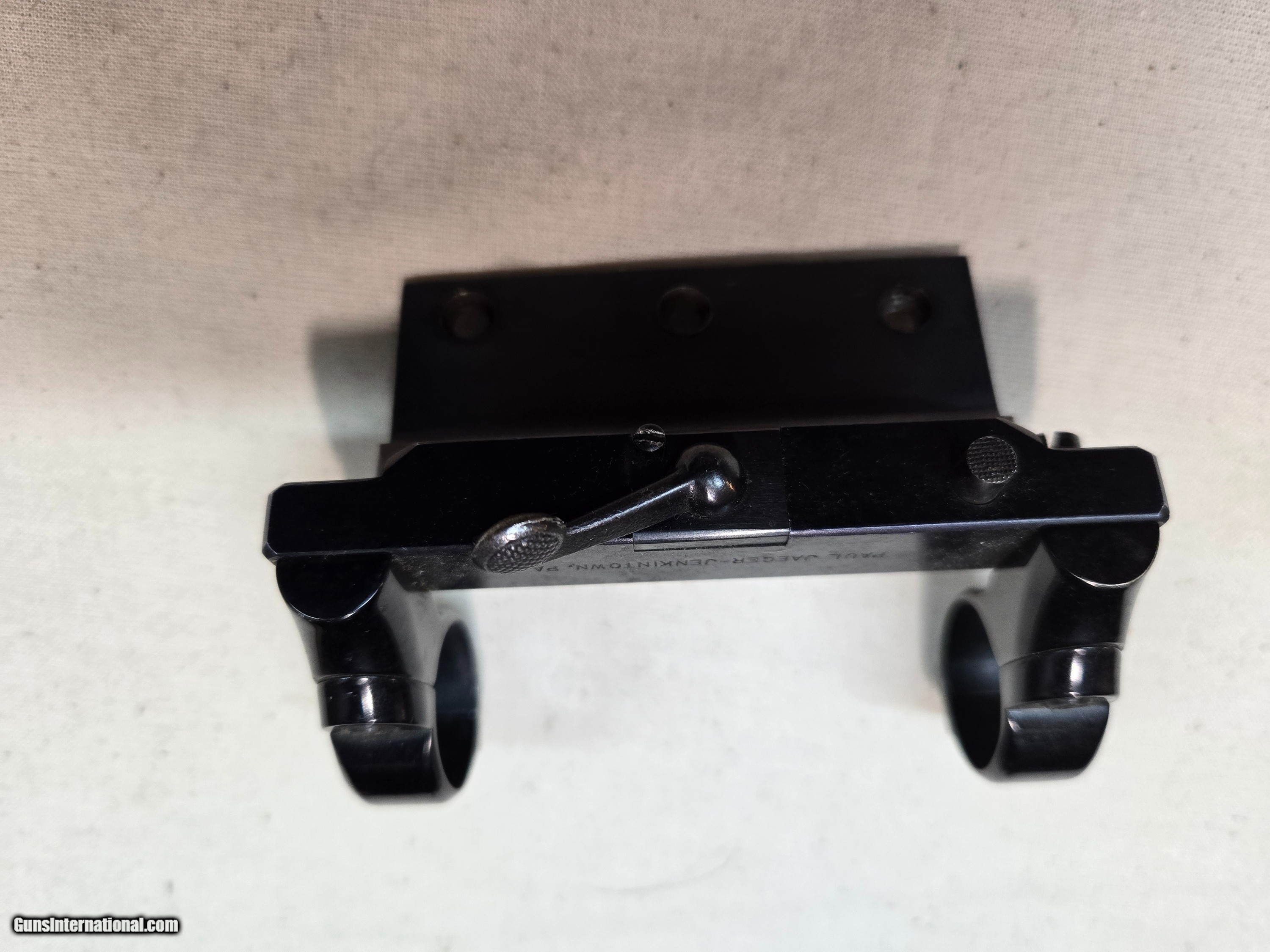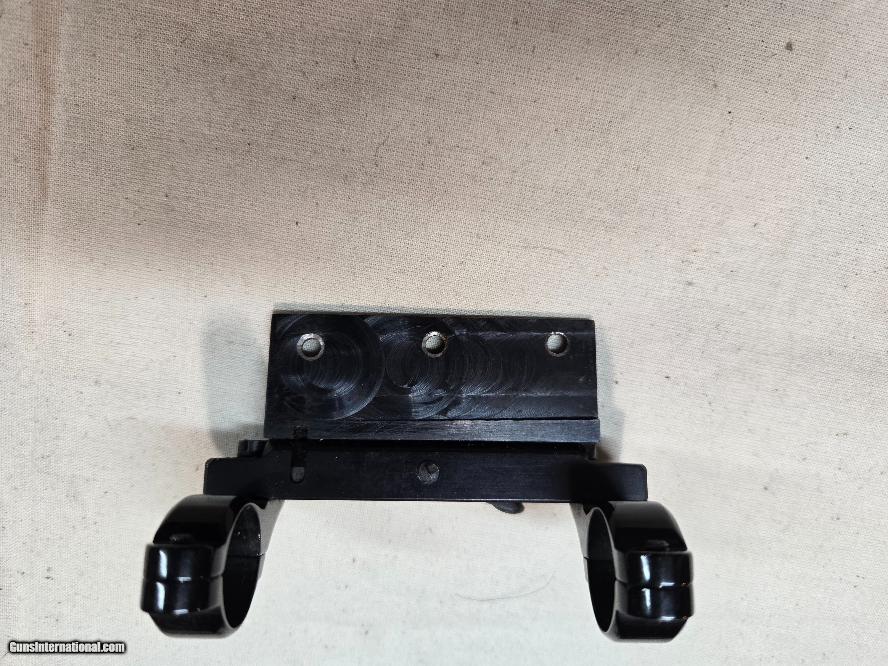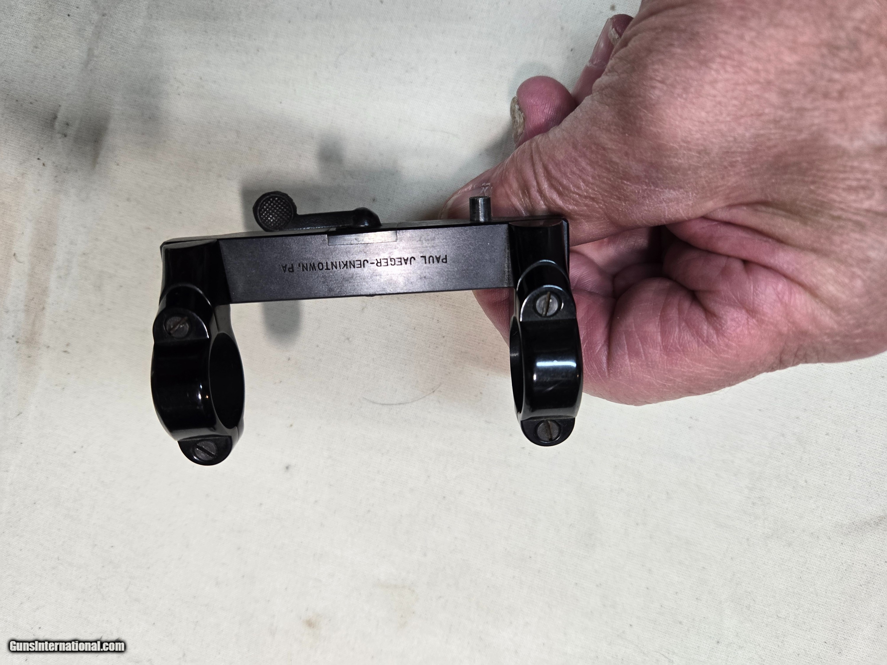 Description: Paul Yaeger quick detatch 7/8" rings and base. Came off a Savage 99 but would think it could be used on any flat sided reciever. Overall excellent condition with just a tiny bit of bluing loss on high corners. $250.00. Believe it can be shipped in small flat rate box for $10.80. Feel free to ask questions. SOLD |