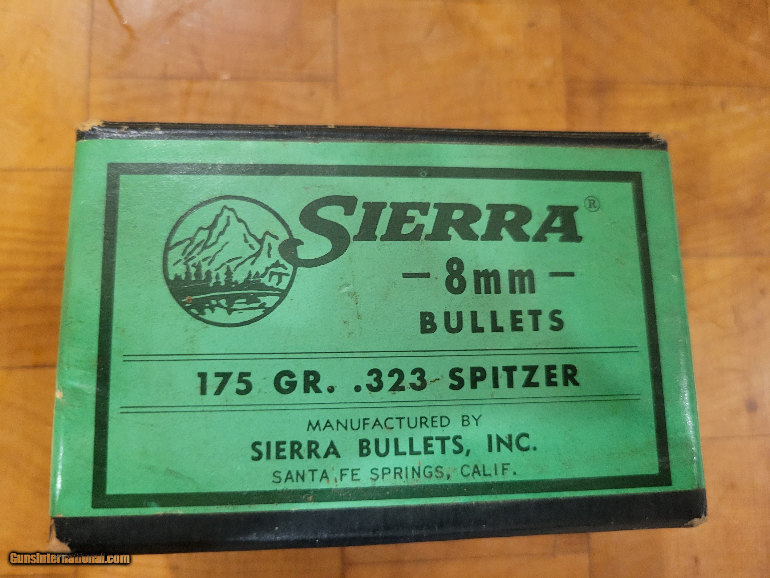 Description: SOLD SOLD SOLD We have one complete box, 100 rounds, Sierra 175 grain, 8mm .323 / 8 x 57mm JS, bullets in the original box. Ships free. SOLD Rifle Caliber: 8x57mm JS |