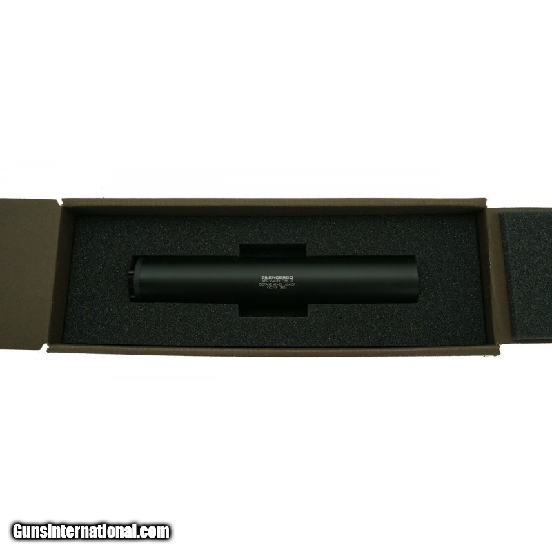 Description: "Silencer Co. Octane 45HD .45 ACP caliber silencer. The Silencer Co. Octane 45 is an excellent silencer that can cover calibers from 9mm up to 10mm. Class III item. NFA rules apply! SOLD |