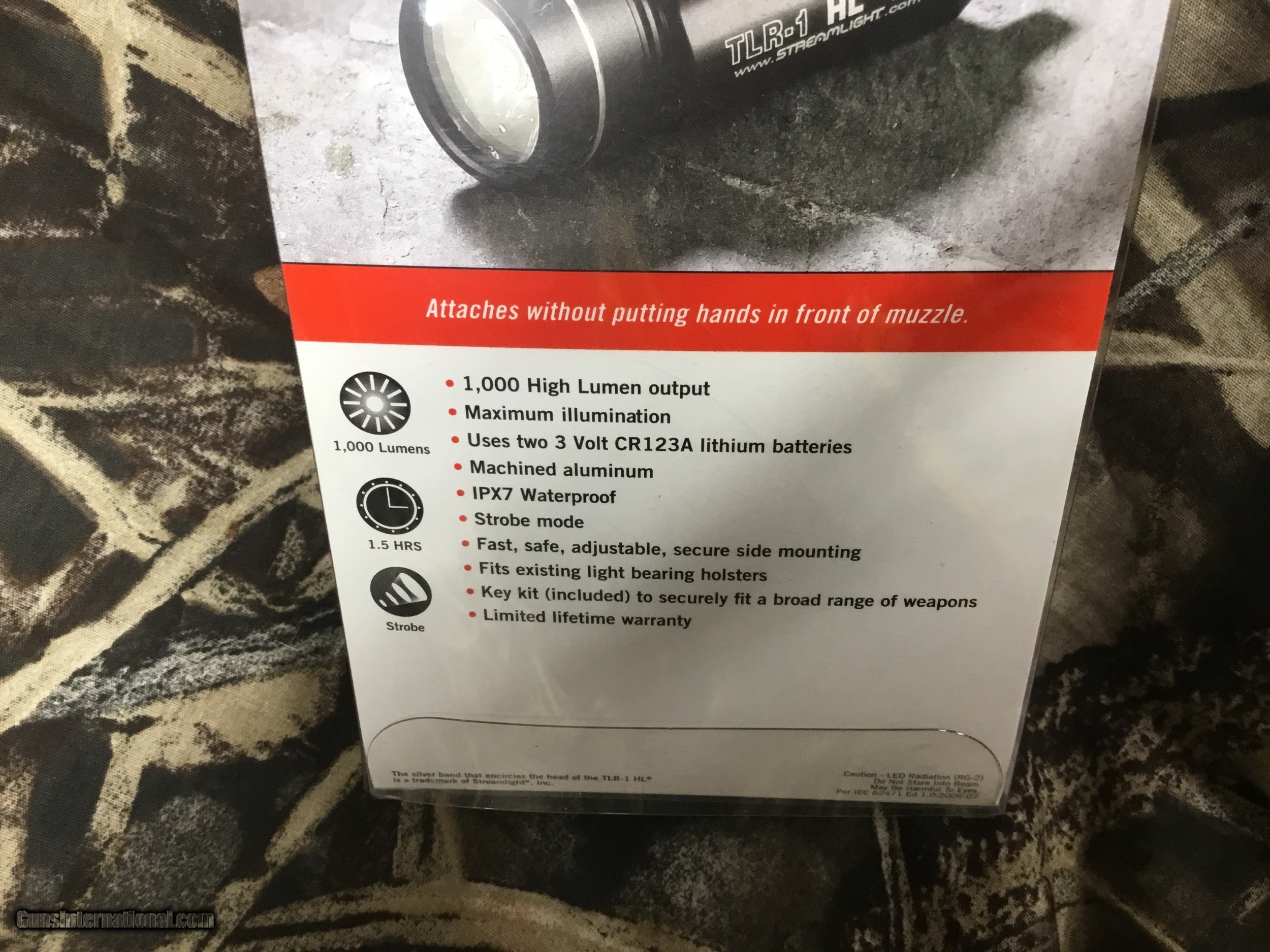 Description: Streamlight TLR-1 HL Rail Mount Tactical Flashlight - 1000 lumen- Black Light is NEW IN BOX 1,0000 Lumens………Strobe Mode……..Key Kit included to securely fit a broad range of weapons ….Maximum illumination……..fits existing light bearing holsters. Thank you for looking at our items. If it is listed on the site, we still have it in the shop. If you wish to buy, hit buy it now and call the shop to pay. Ask for Bree....... (803) 874-1060. If you are WEST of the Mississippi add $10 more to shipping cost. NO sales to California NO INTERNATIONAL SALES. $159.00 FREE SHIP SOLD |