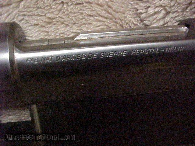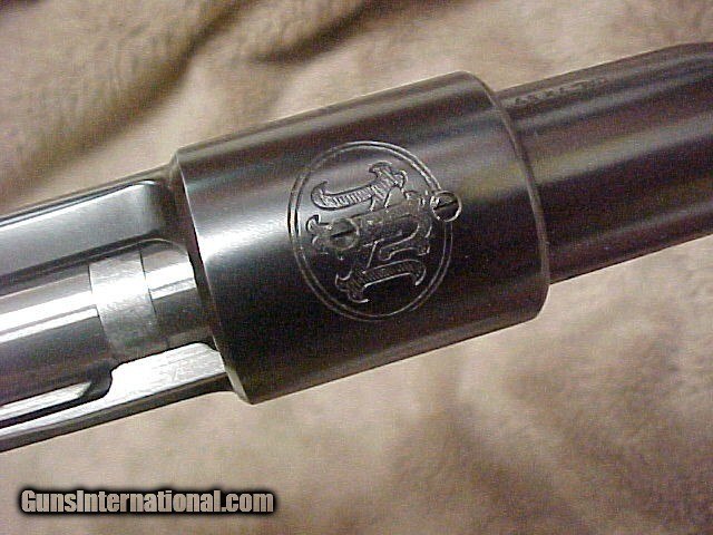 Description: An excellent example of the quality and finish of FN's early work. Retains 97% of the original blue on barrel and receiver with bolt and bolt handle finished in the white as is correct. Original 24" stepped barrel with banded sling swivel, 2 leaf express sight and original front sight ramp. Receiver is D&T. SOLD |