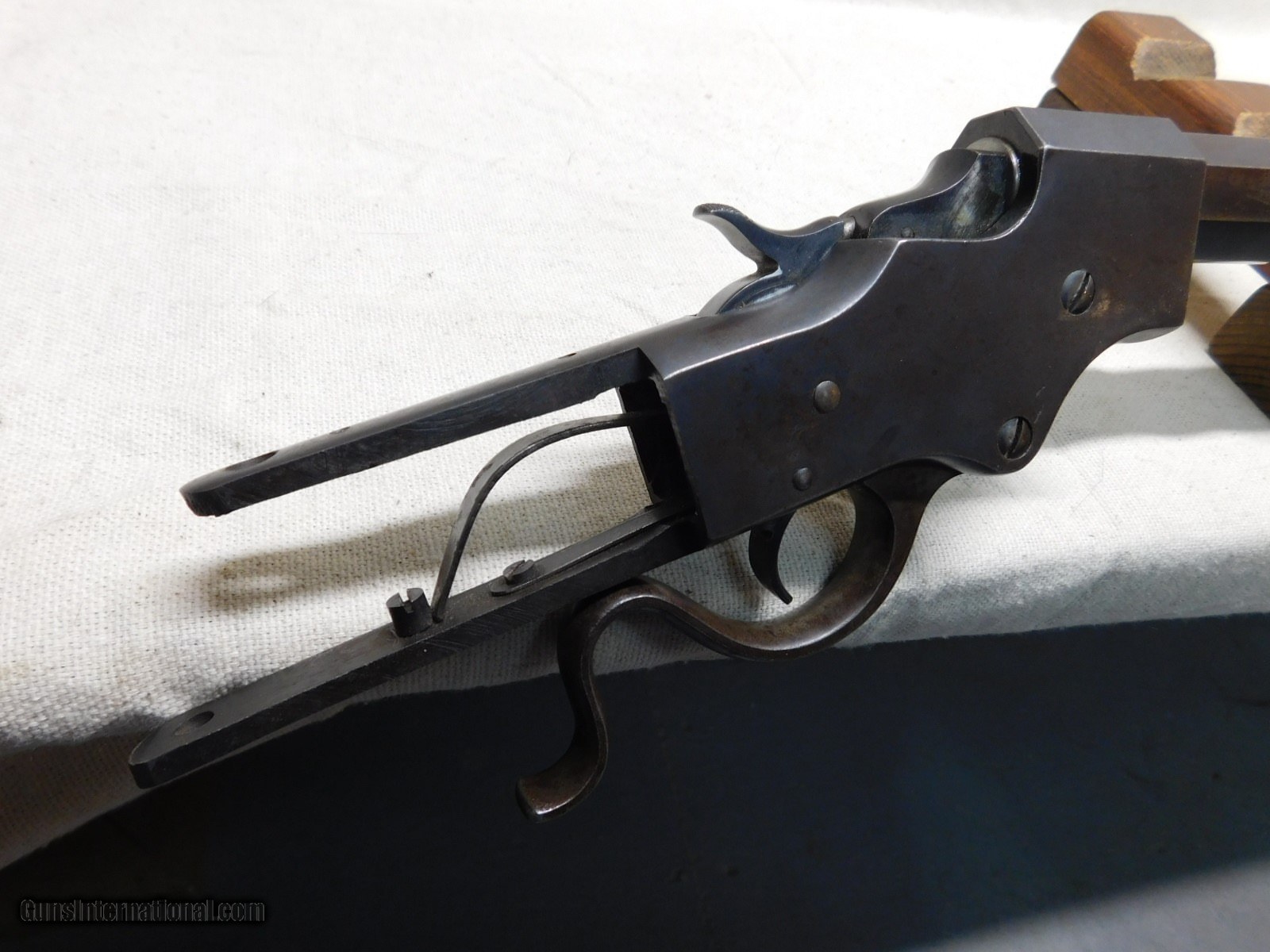 Description: J.Stevens Model 44 Barreled Action,25-20 Win Standard not Single Shot by My Chamber Cast,24" Octagon to Round Heavy Barrel Bore Looks Good with No Pitting and Fair to Good Lands & Grooves,Action is Complete Except for Tang and Forend Screws, Front Sight is missing, Nice Project Gun!! Store hours Thurs-Fri-10AM-8PM Sat-9AM-12PM All Other times please leave a message,Thank You! No California Sales Lower 48 State Sales only Pa. Residents 6% Sales Tax applicable Shipping $ 35.00 SOLD |