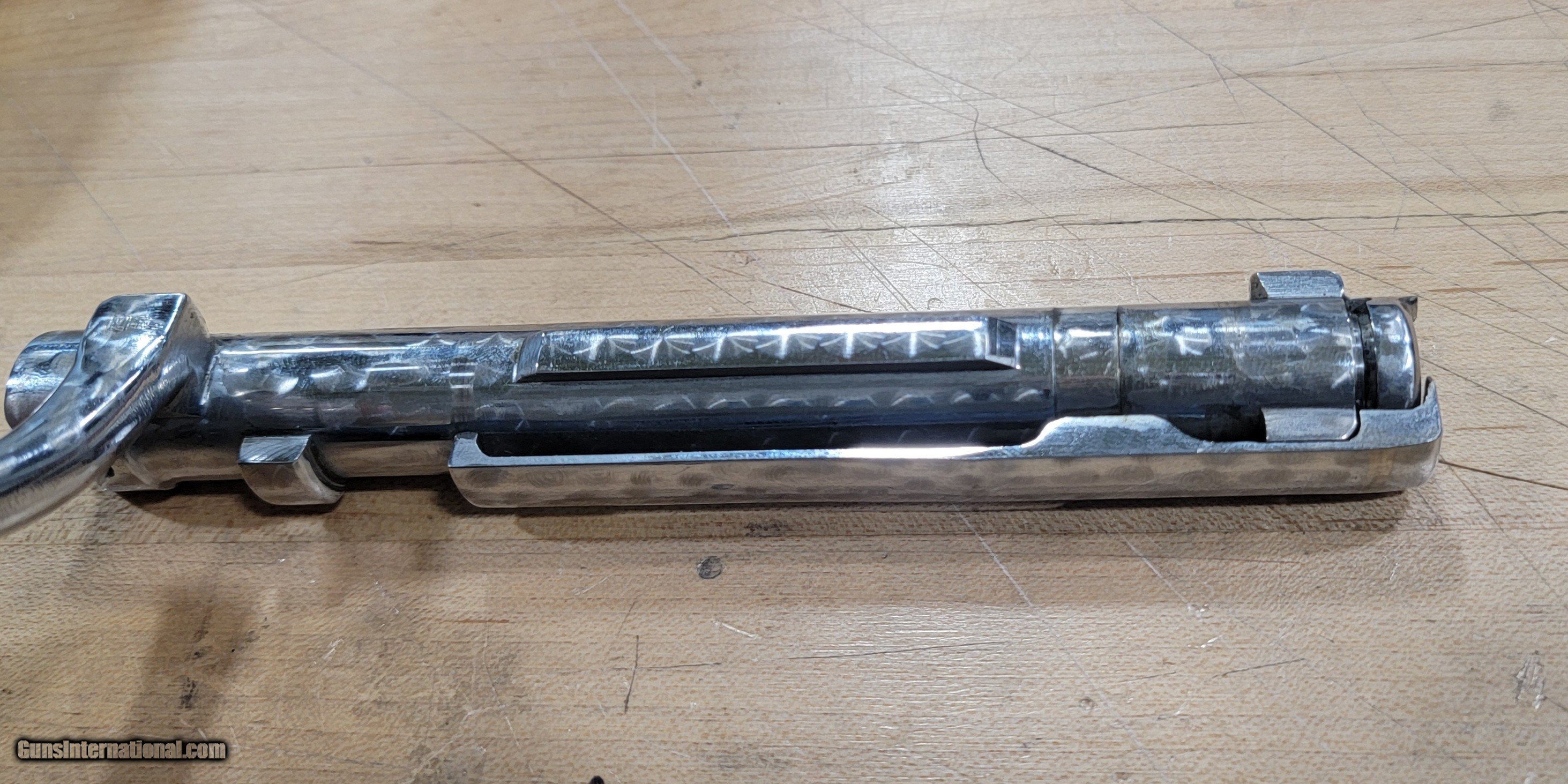 Description: Nice original FN bolt, extractor and collar. Standard bolt face. Large , light jeweling and chrome plated. Don't ask me why. The plating can be removed of course. Thank you, Steve SOLD |