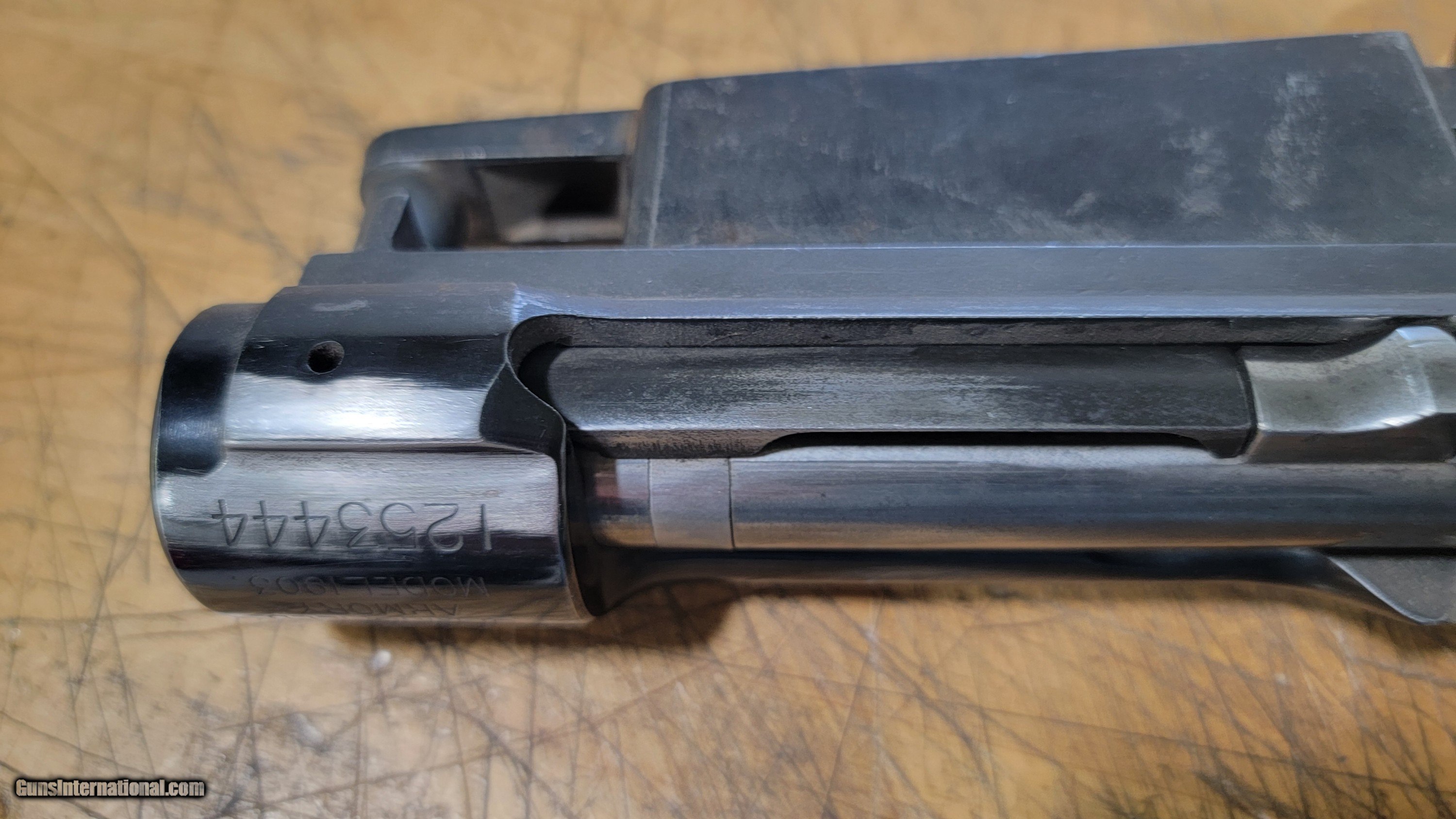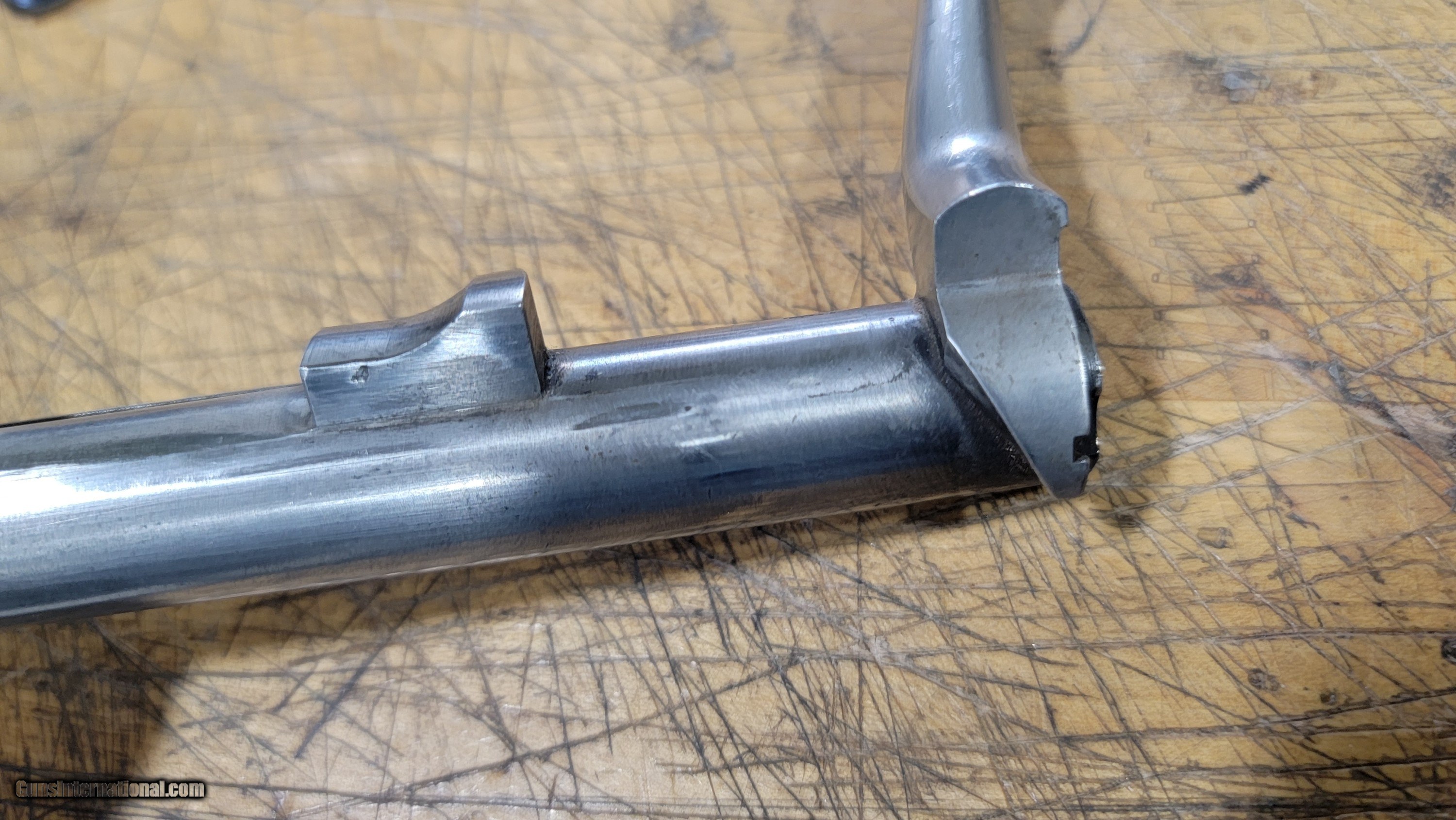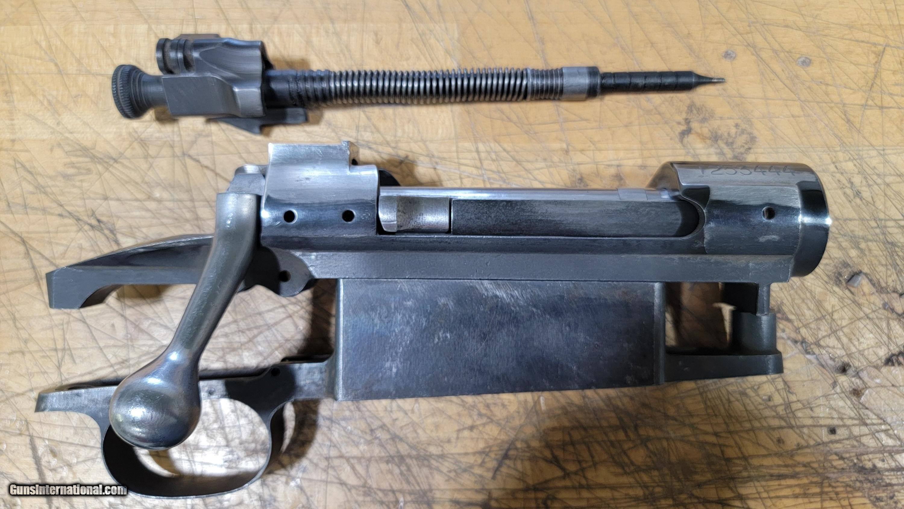 Description: 1903 late model Springfield action. Great start on a custom build. I bought this from one of our counties great metalsmiths, Dave Talley. Dave had to get rid of a few projects and I considered myself lucky to buy this classic from Dave. Dave had square bridged the rear bridge ( not an easy chore ) but left it blank on top. I assume he was planning on making a scope base for the front and then machining in dovetails for his Talley scope rings that are known world wide. When you weld on these rear bridges they tend to squeeze in making the bolt very tight. This bolt is in great condition and Dave did a superb job refitting the bolt for a very snug but smooth fit. Nice classic bolt handle installed ,just needs a bit of repolishing. A stripped bottom metal and complete shroud/ firing pin unit also comes with this reciever and bolt.. my price for just performing bridge and handle work would be in excess of $1500. Great start to a fine custom build. Asking price of $375.00 Thank you, Steve Heilmann SOLD |
