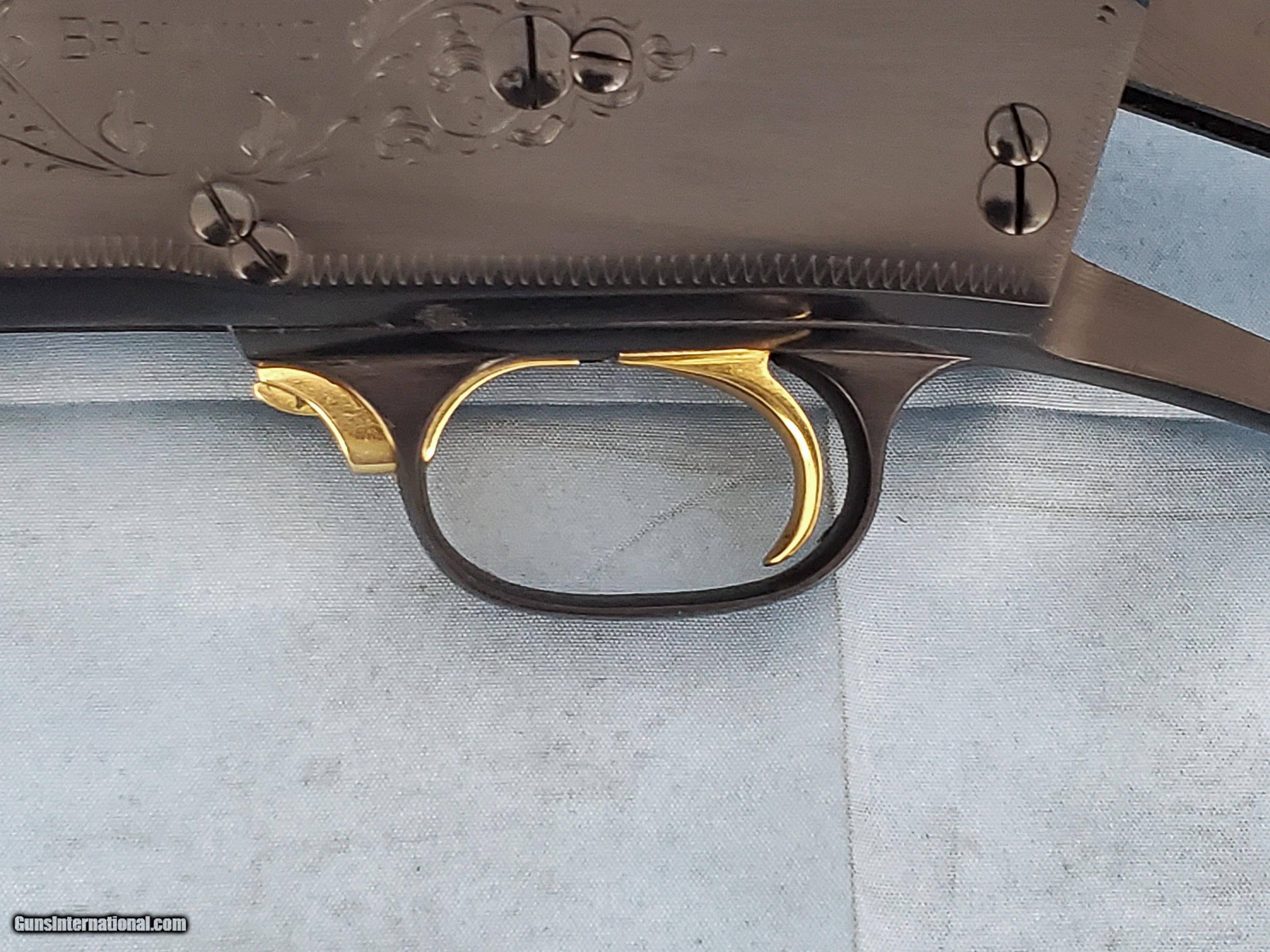 Description: MADE IN BELGIUM IN 1954. REBLUED AND WITH GOLD SAFETY AND TRIGGER. PLEASE ADD $35 FOR SHIPPING. SOLD Curio/Relic: Yes Shotgun Gauge: 16 Gauge Manufacturer: BROWNING Model: AUTO 5 Metal Condition: EXCELLENT |