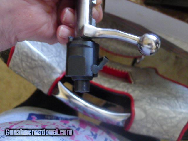 Description: this is a new in the box Henri Dumoulin Belgium action It features a straddle floor plate, Model 70 style 3 position safety The action is a DOUBLE SQUARE BRIDGE. It has a standard bolt face (30-06 but can be opened for the normal 7mm magnum family of cartridges) The receiver has a dual scope mounting system it is dovetailed for slide on scope rings or you can use normal scope bases as it is drilled and tapped. The guard screws holes are the standard 98 mauser spacing. buyer pays shipping $25.00 USPS Priority mail. Questions ask before . Will accept personal check but IT HAS TO CLEAR MY BANK BEFORE SHIPPING. Please use email to contact me, having problems with my landline phone SOLD |