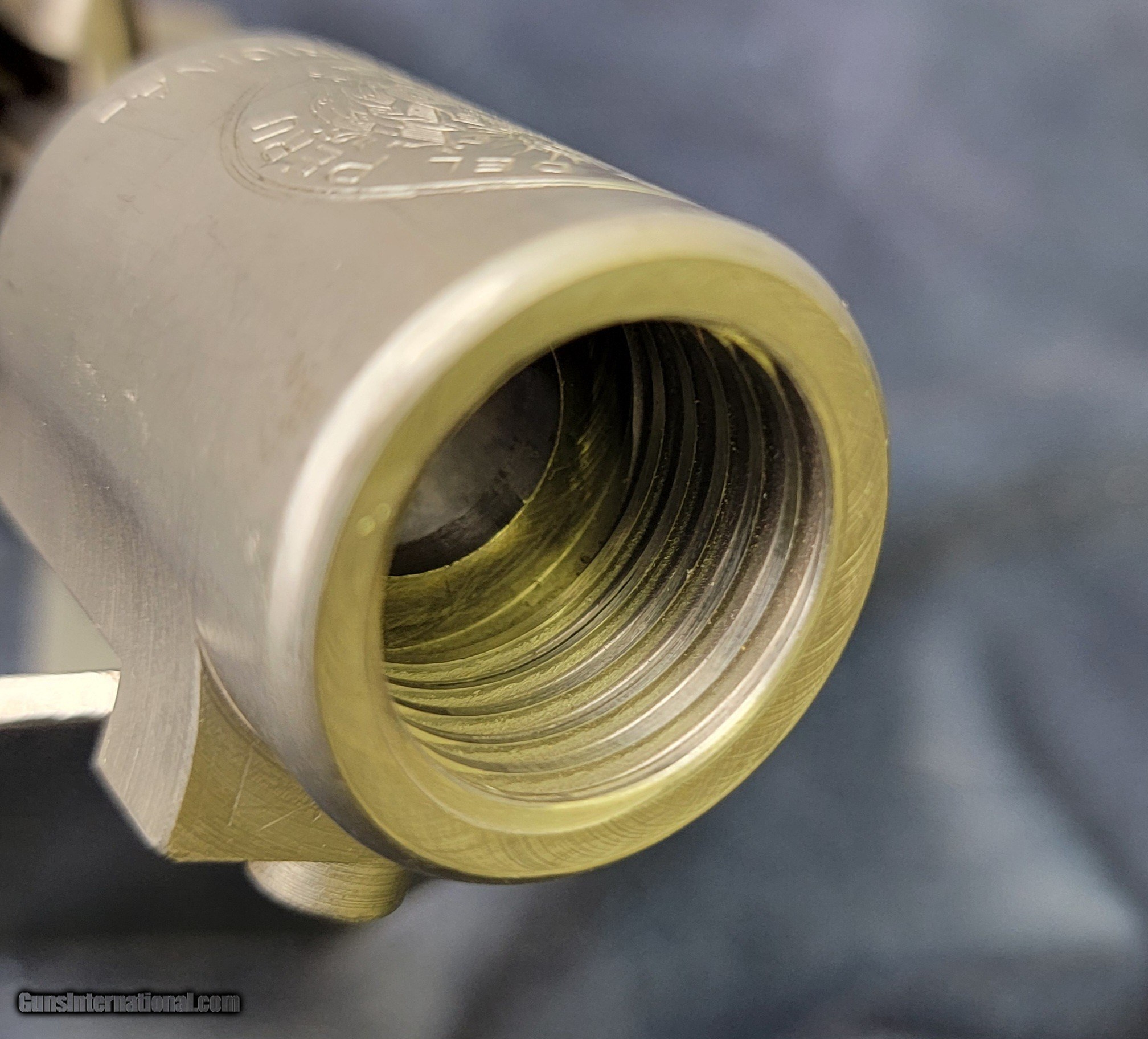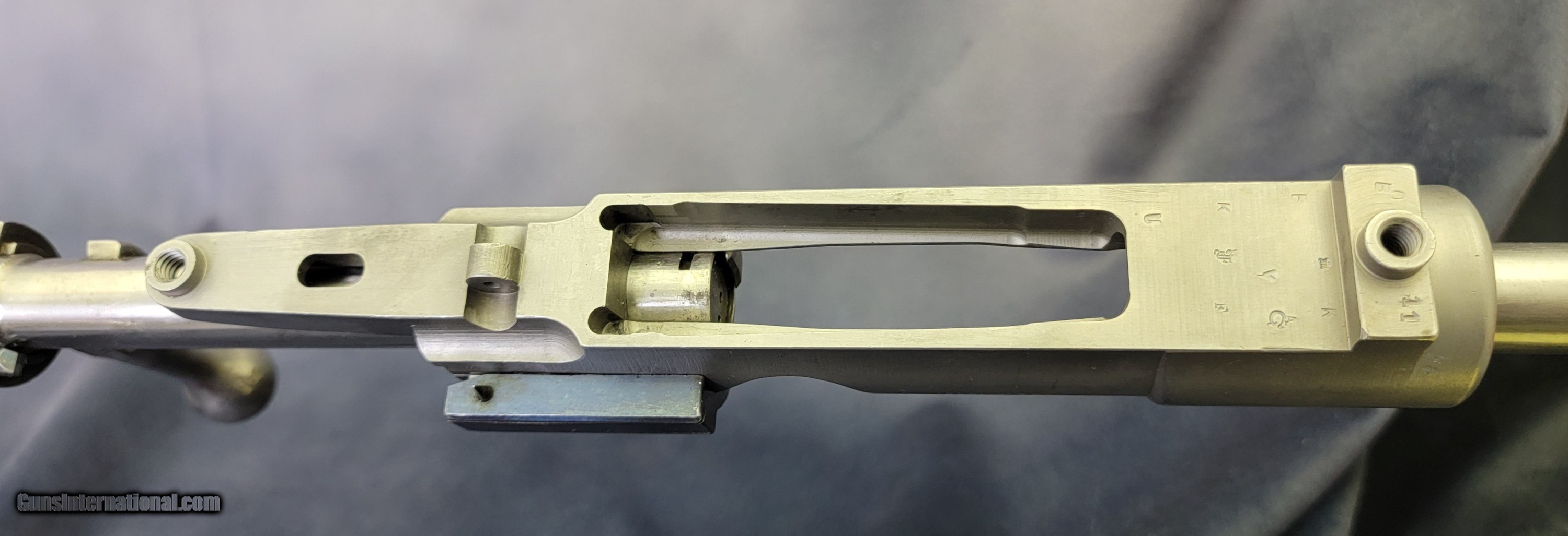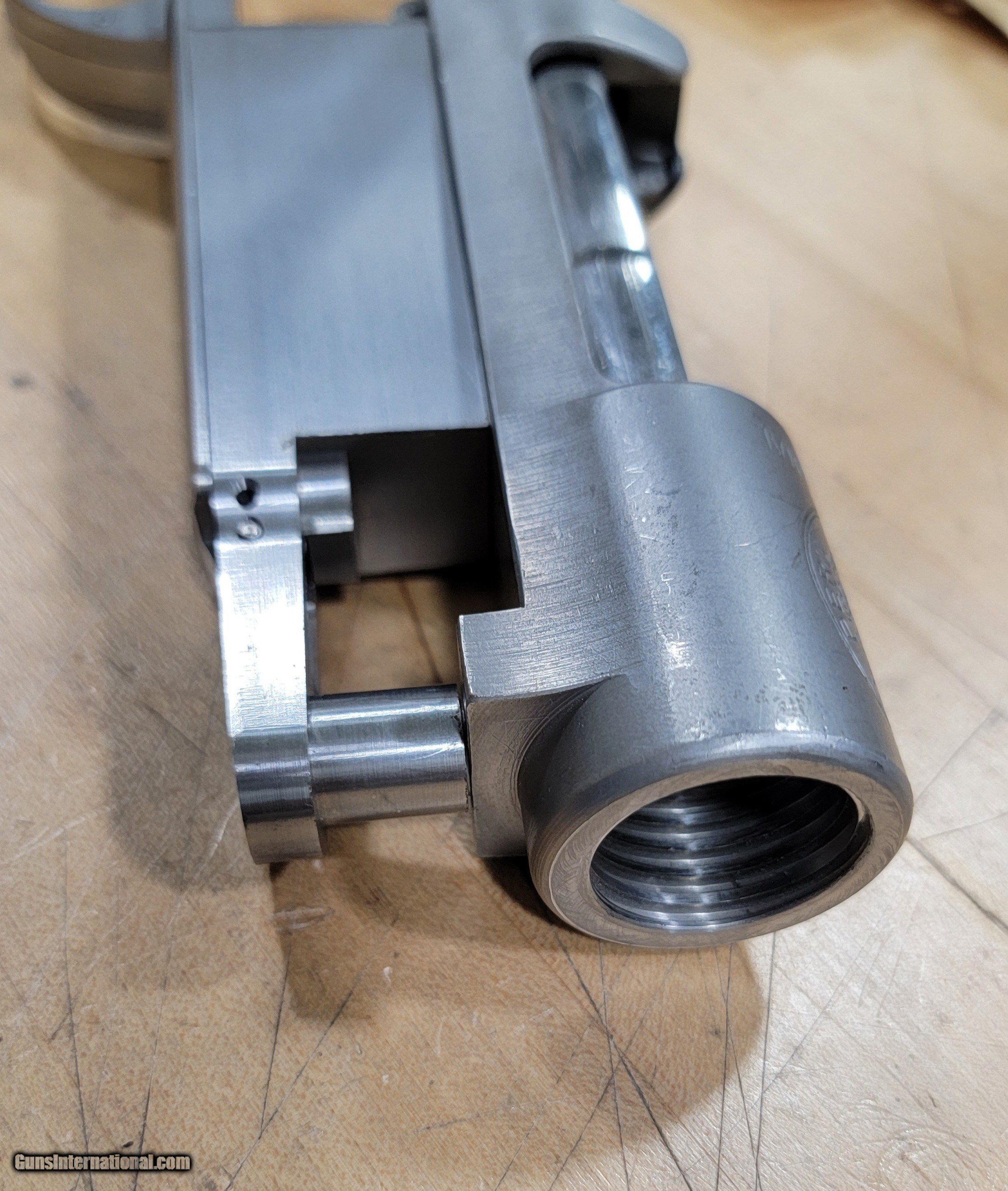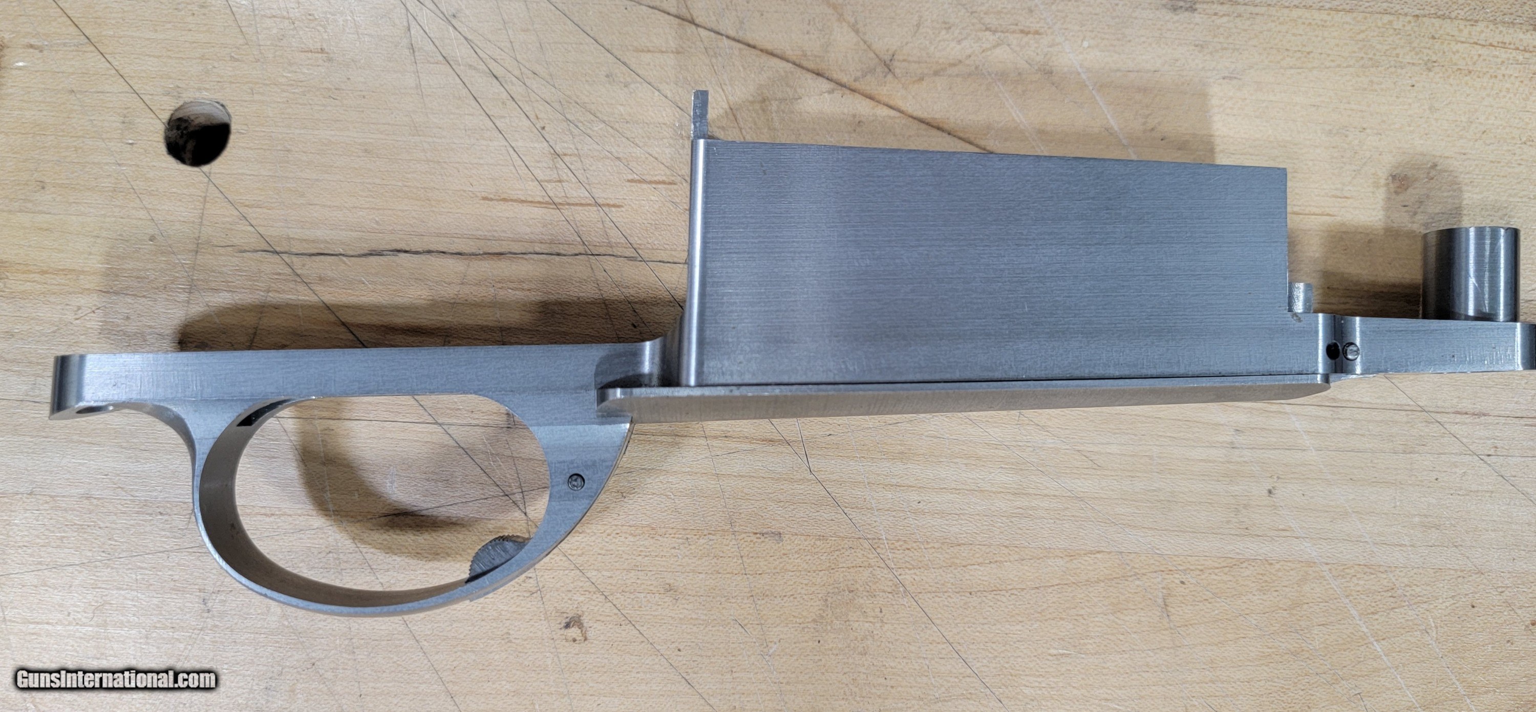 Description: 1909 Peruvian action and NOW with Original Blackburn old/ new stock bottom metal. So many ways to build a fine custom rifle on these Oberndorf made actions. These two that I have availible have had their original small Mauser threads ( .980 dia ) remove and new square or ACME type ( 1.10 x8 )threads precisely . machined in, inside torque shoulder and face of reciever all trued concentric. Both these receivers have been annealed and need to be sent out for re- hardening ( Blanchard in Utah is recommended). All this work was done to achieve the most reliable, rugged, and accurate take down system on a Mauser 98 design. Legendary gunmakers Hartmann&Weiss have used these actions and thread system on their small takedown bolt rifles. Machining the barrel threads must be done precisely for maximum accuracy. Leave the threads full and twist in place or remove approx 50% of threads in reciever and on barrel and achieve a quarter twist, fast and accurate take down. These recievers can be opened up for 30-06 length cart. Even unusual 2 barrel sets. I have built one in 30-06 and 425 Westley Richard's ( take that ) hah hah. Extended tangs and all. I you are concidering building a takedown rifle one of these actions deserve consideration. $1800 per action with one Original Blackburn bottom metal. Thank you, Steve SOLD |