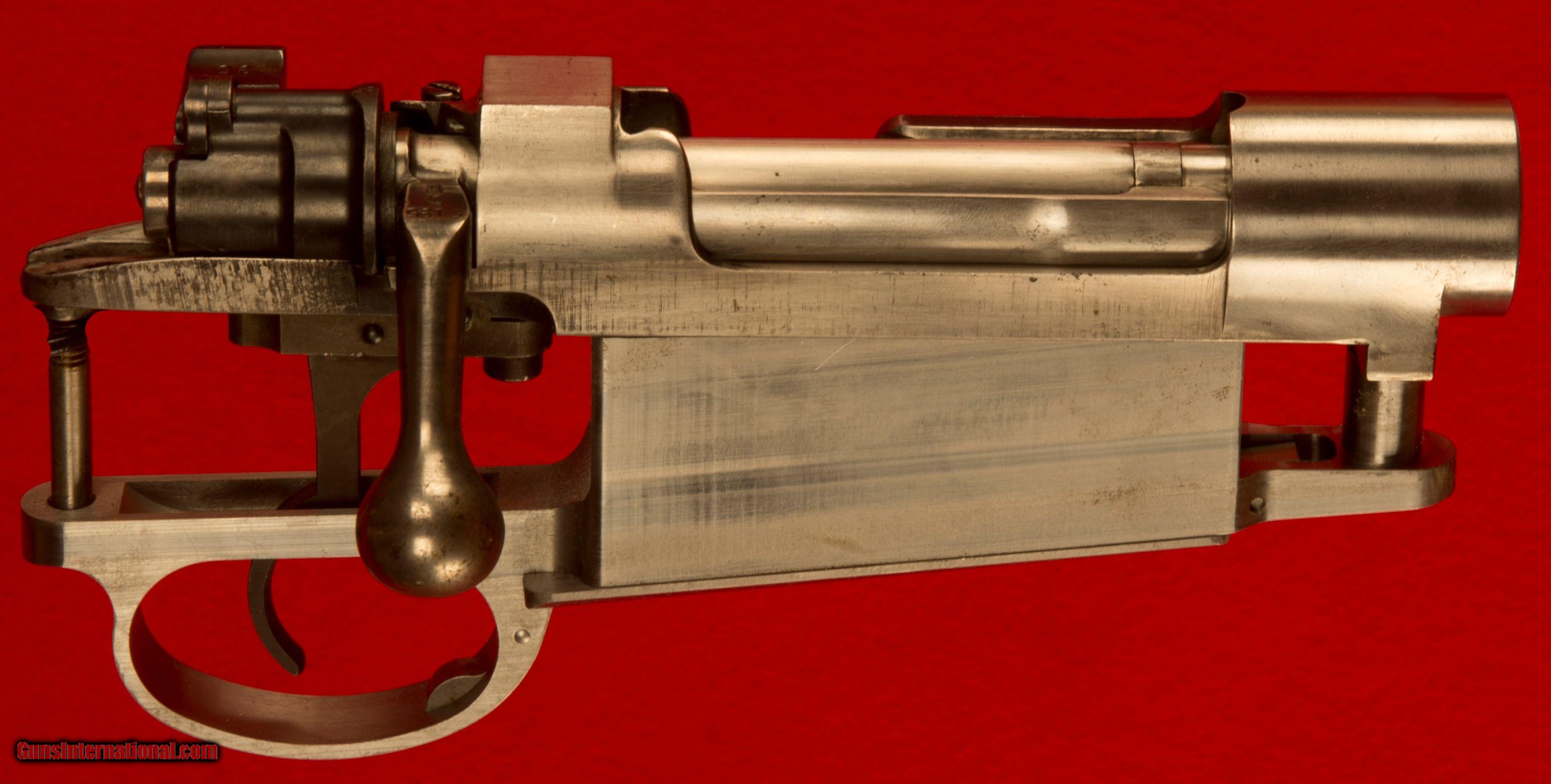 Description: Oberndorf standard length Singles Square Bridge sn54026 originally built in 1912 for Holland and Holland in 275 H&H Magnum( J. Speed). Aftermarket Blackburn extended magazine for feeding belted magnum cartridge up to 3.600". SOLD |