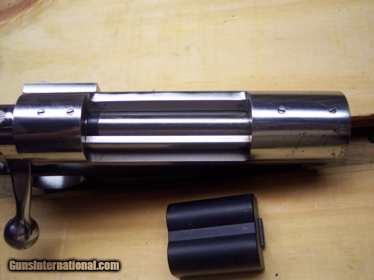 Description: Stainless sako rifle action. Medium caliber etched eagles on magazine plate and trigger.Slight pitting on front and rear of receiver. Original box. SOLD |