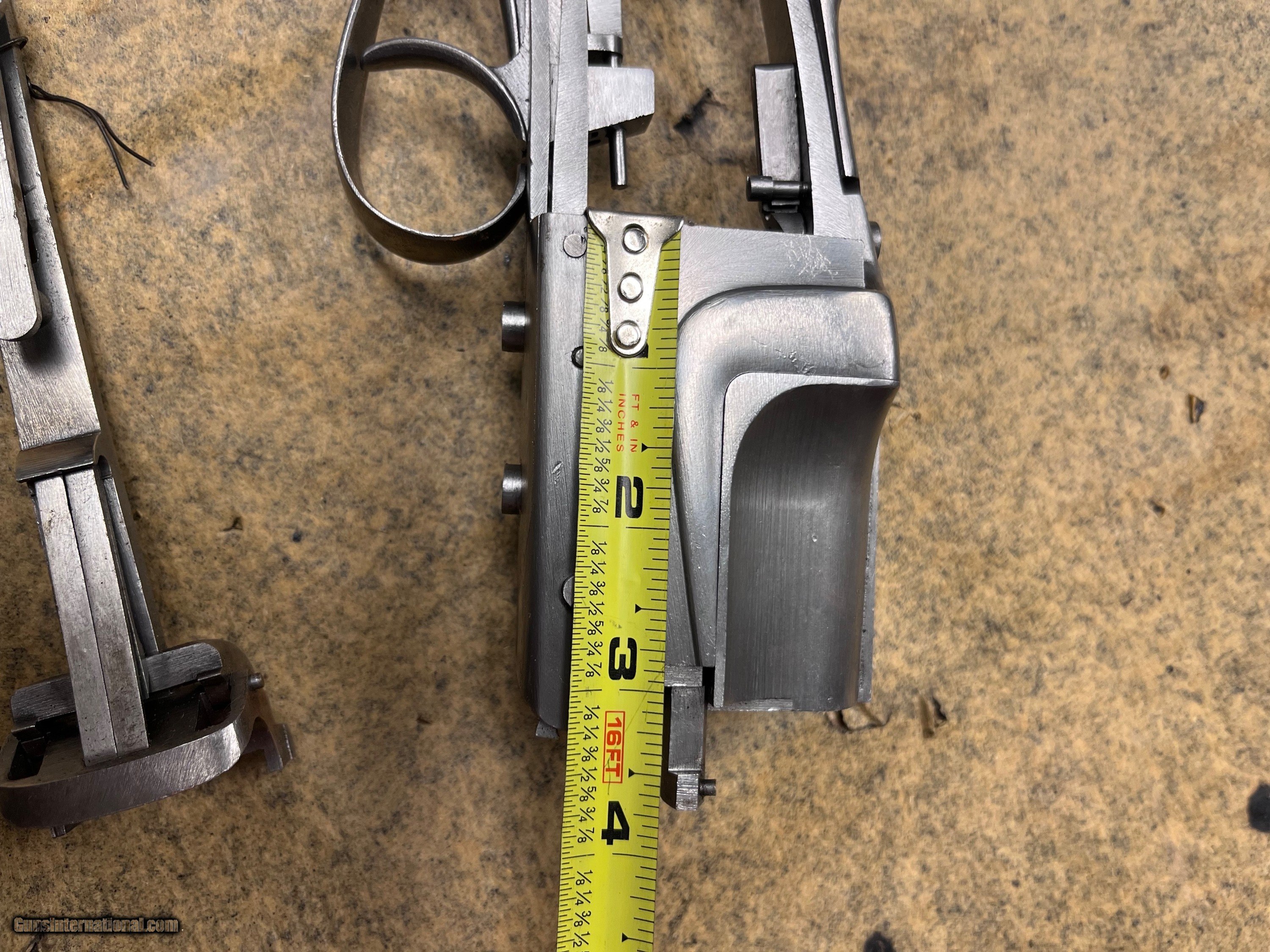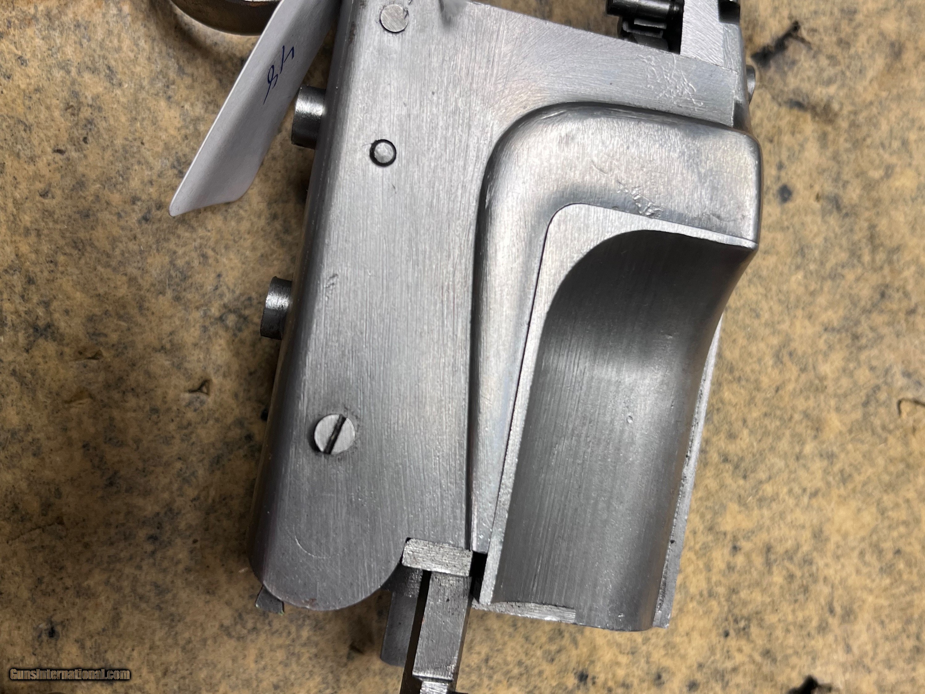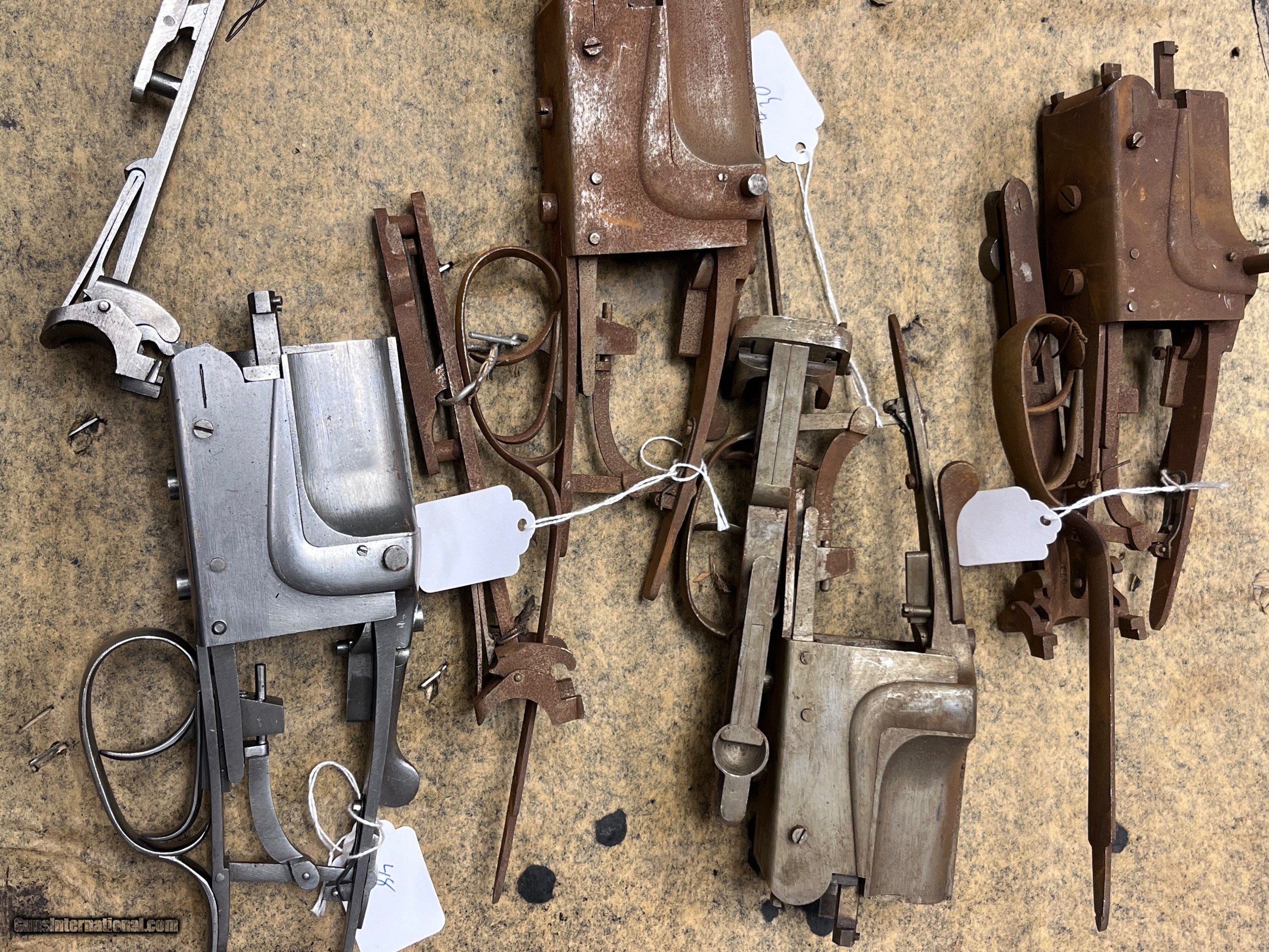 Description: This is a nice well made over under action. I do not know the manufacture. These are not finished actions. Includes monoblock trigger guard and Forend iron. is for one action. I have several so it may be slightly different than the picture as to the amount of surface rust. This is not a beginners project. Will require lots of fitting polishing and heat treatment. Sold as is. Could be used for double rifle or shotgun or combo. Must ship to FFL . I can only ship on Saturdays. SOLD |